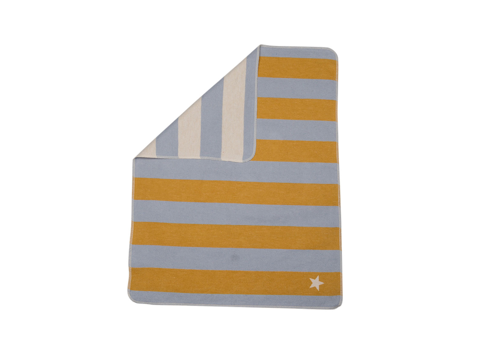 - Decke mit Blockstreifen in Gelb und Hellgrau und kleinem Stern