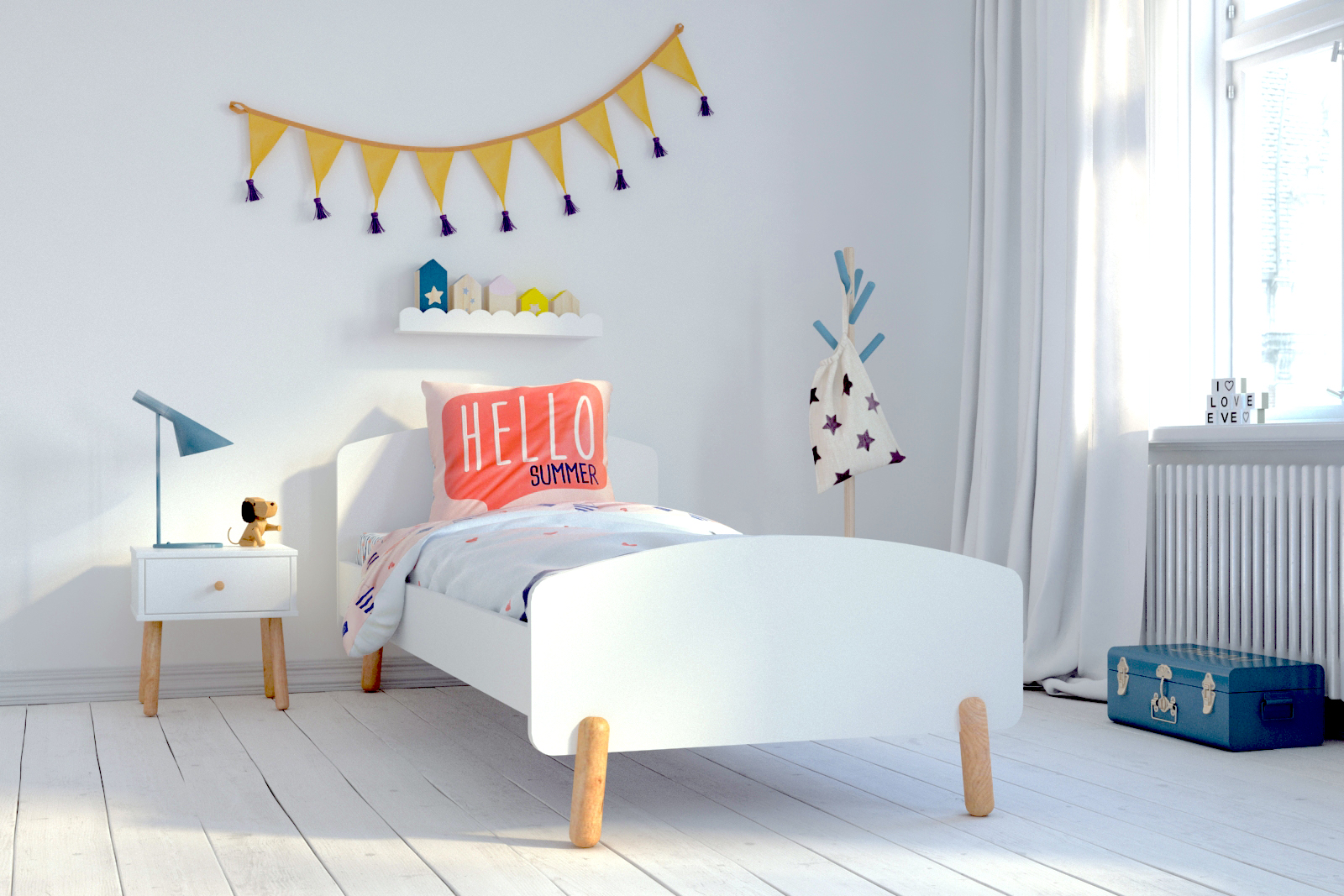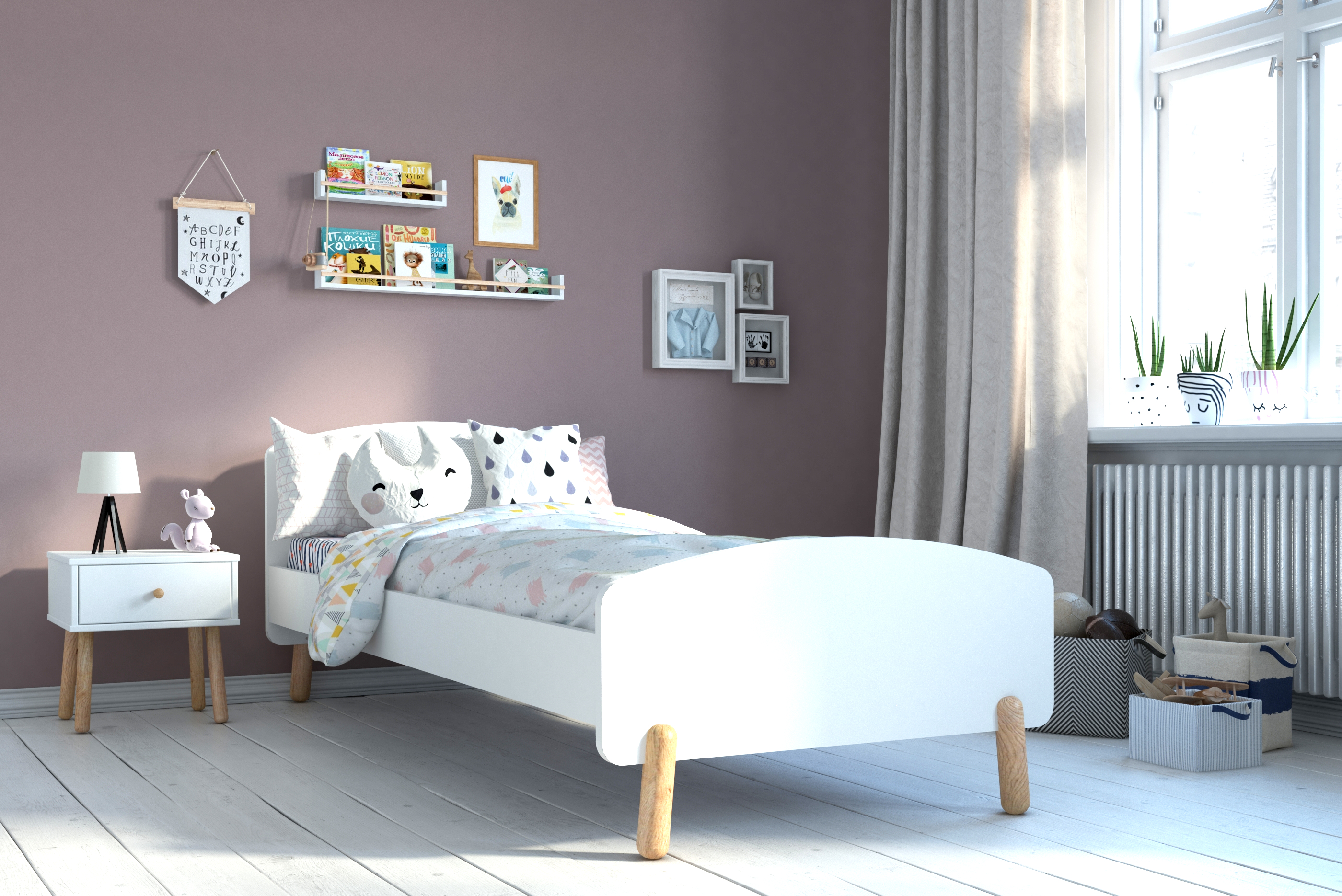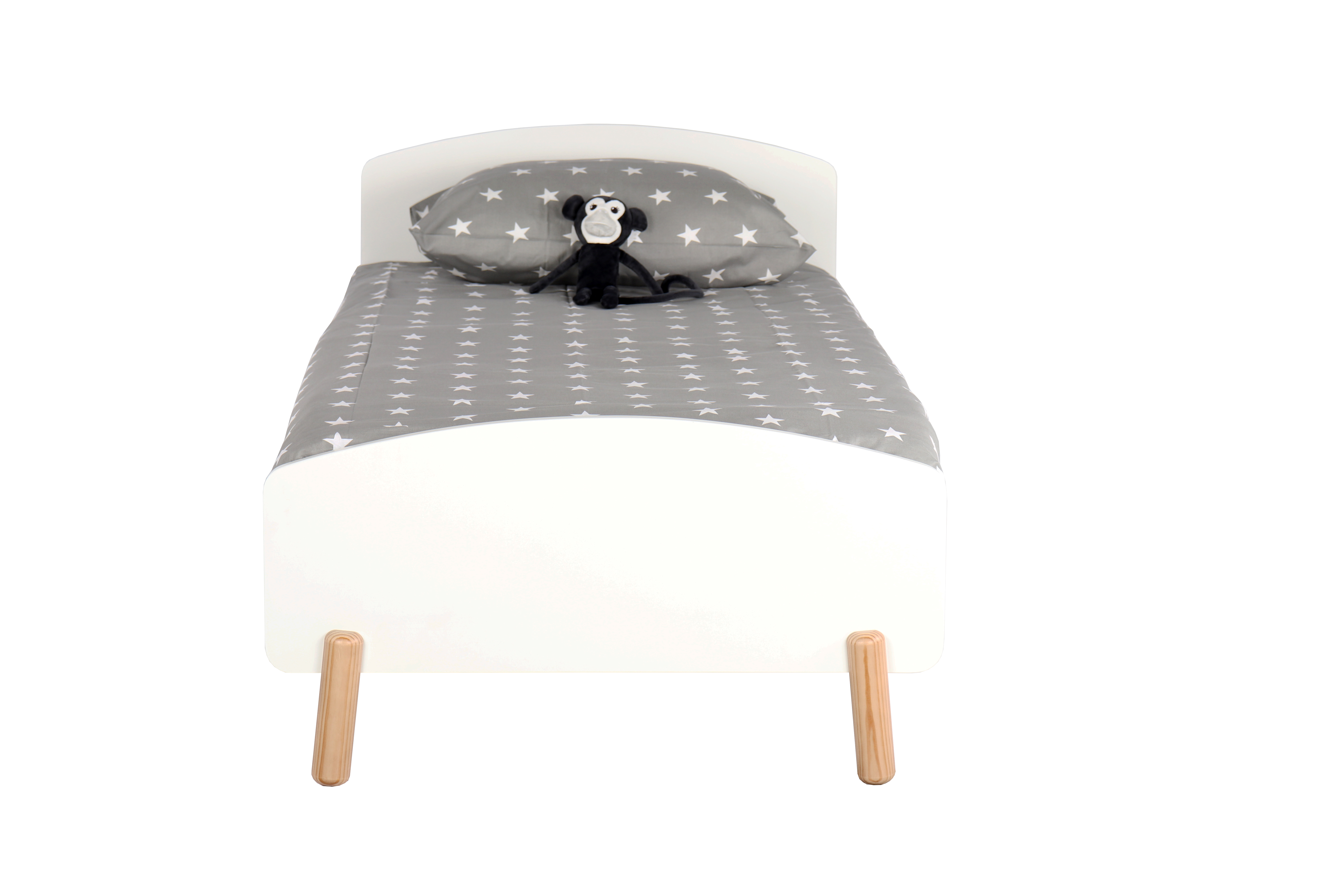 Dieses Bett im skandinavischen Design besticht durch seine minimalistische Schlichtheit, die es zu vielen Einrichtungen passen lässt. Der Lattenrost für eine Matratzengröße von 90x200 cm ist im Lieferumfang enthalten. Das Bett besteht aus robustem Kiefernholz und weiß lackiertem MDF. Die neutrale Optik macht es als Kinderbett nutzbar, aber auch später als Jugendbett kann es problemlos weiter verwendet werden.