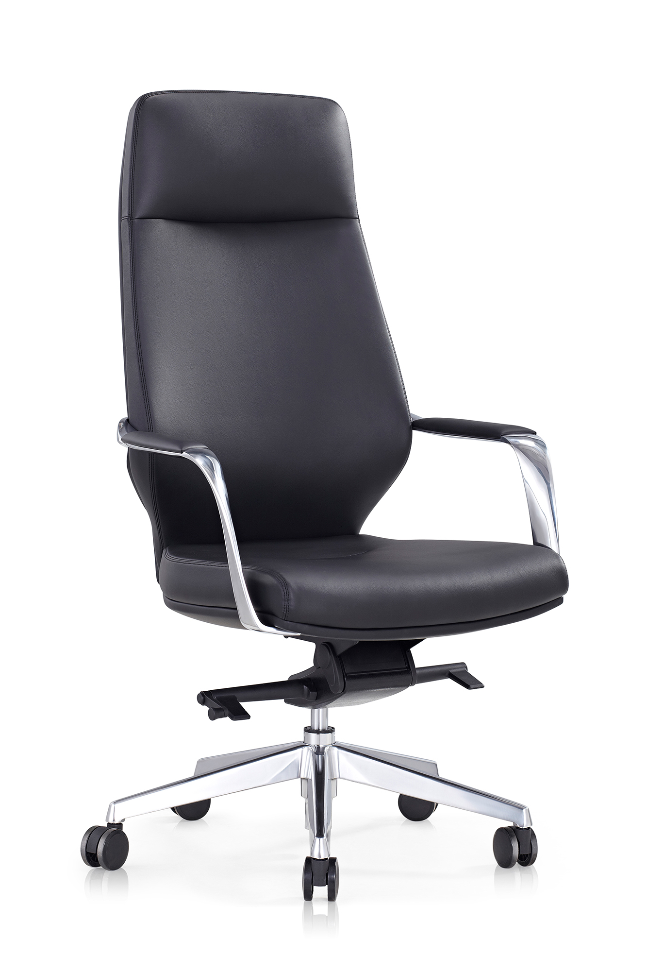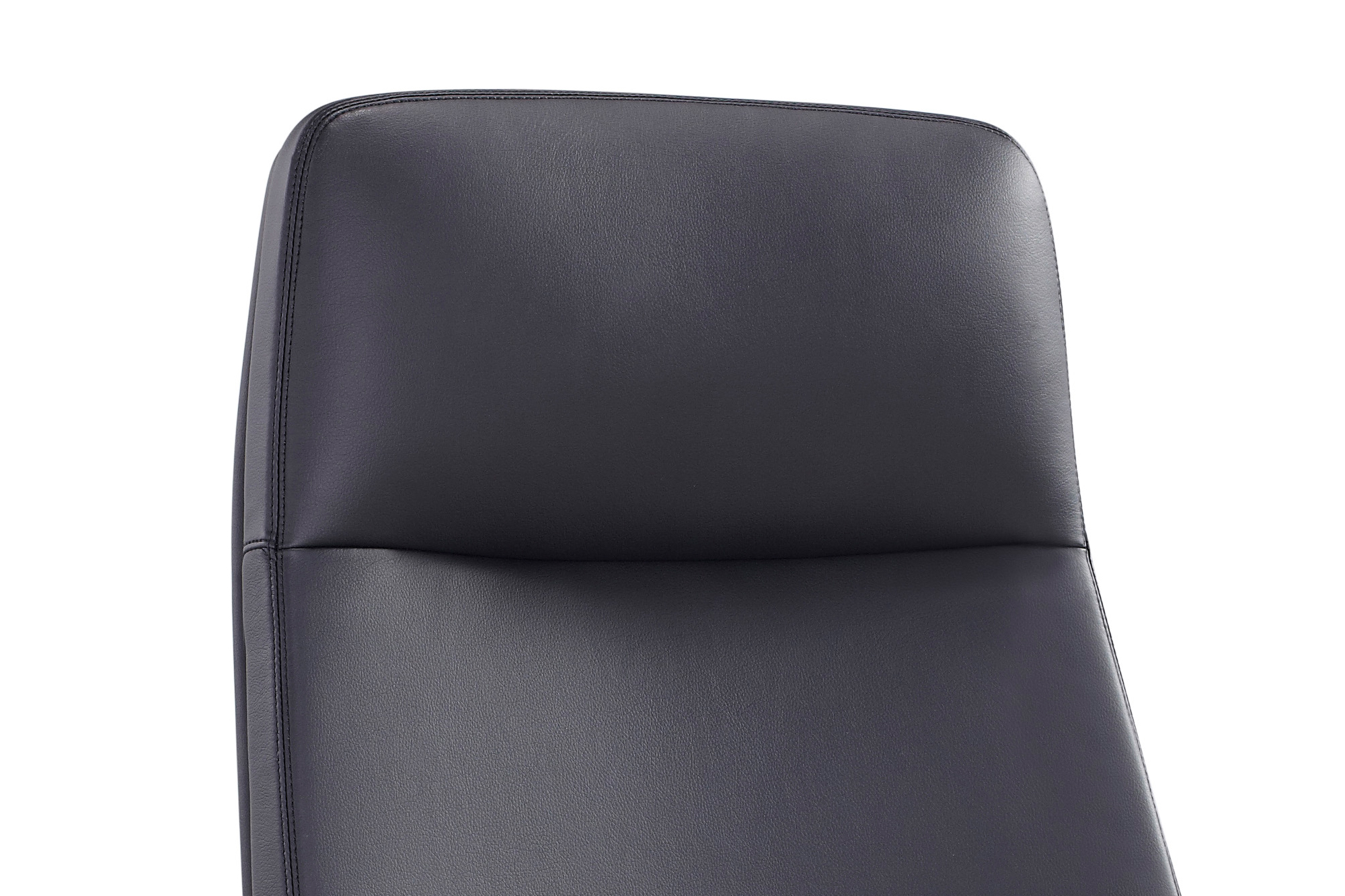 Der Schreibtischstuhl überzeugt mit einer Kombination aus klassischem Schwarz und glänzender Chromoptik. Der Sitz- und Rückenbereich, sowie die Auflage der Armlehnen bestehen aus schwarzem Kunstleder. Das formschöne und stabile Fußkreuz in Chromoptik gewährleistet nicht nur einen sicheren und stabilen Stand, sondern bietet auch einen perfekten Kontrast zum schwarzen Kunstleder. Die 5 Doppelrollen stehen für einen geringen Rollwiderstand und robuste Qualität. Dank angenehmer Polsterung, Armlehnen auf Arbeitshöhe und Rückenlehne mit Kopf- und Lordosenstütze erhalten Sie einen komfortablen Sitzkomfort der Extraklasse, bei dem automatisch eine gesunde und ergonomische Haltung eingenommen wird. Die Sitzhöhe des Drehstuhls ist verstellbar und 360 Grad drehbar. Der eingebaute Kipp- und Drehmechanismus sorgt dafür, dass Sie Ihre Lieblingsposition finden. Genießen Sie das vollendete Design dieses Bürostuhls. Der Kunstlederbezug des Schreibtischstuhls ist sehr pflegeleicht und strapazierfähig. Kleinere Verschmutzungen können mit einem leicht feuchten Baumwolltuch entfernt werden. Das Fußkreuz kann mit einem trockenen Baumwolltuch, aber auch leicht feucht, abgewischt werden.