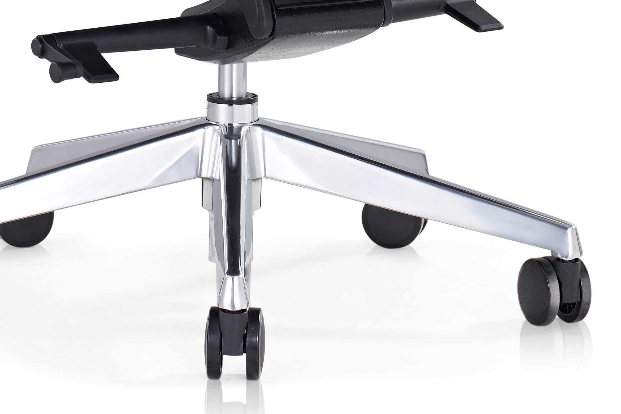 - Stabiles Fußkreuz aus Aluminium in Chrom-Optik