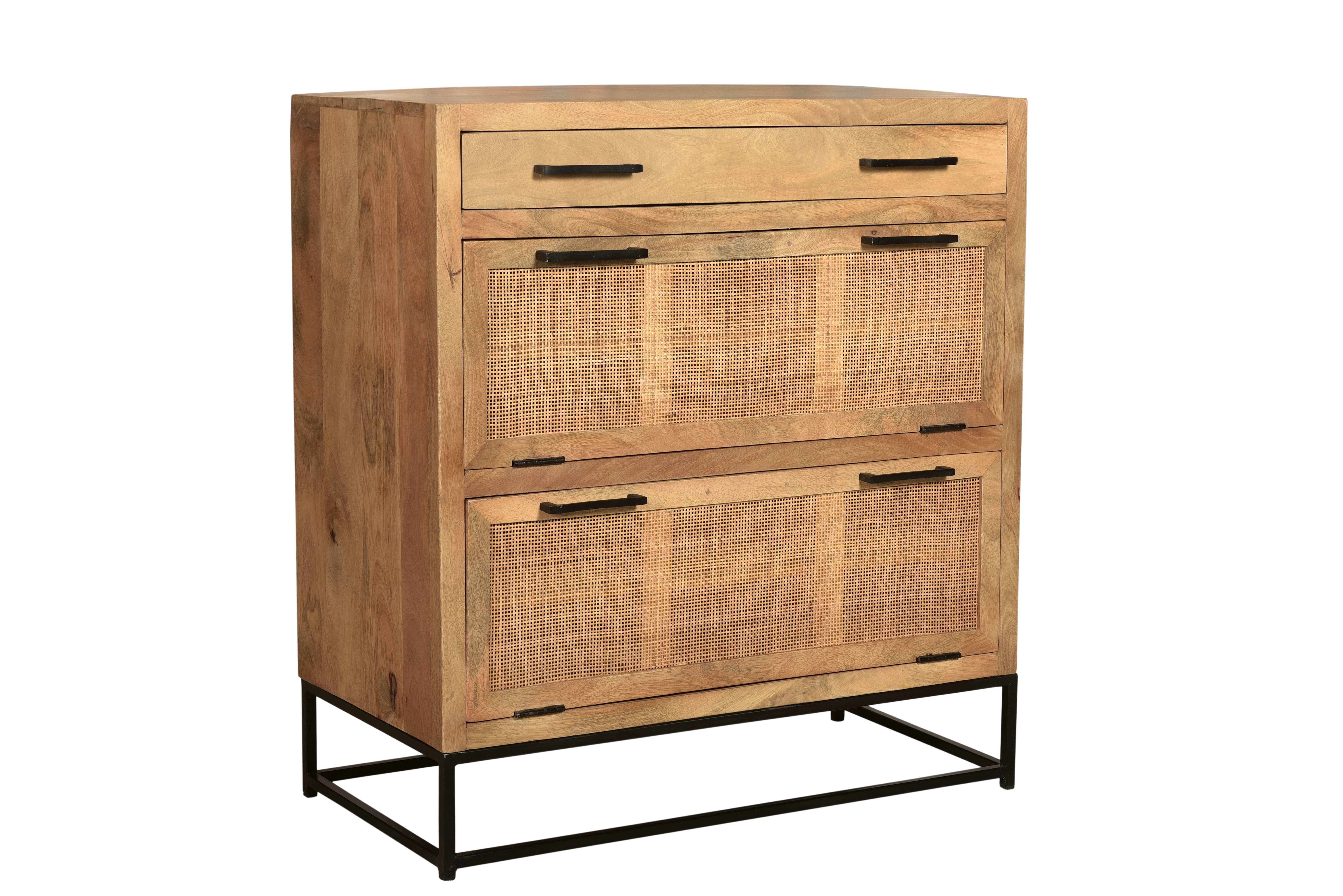- Material: Mango lackiert mit Rattan-Front, Gestell Metall