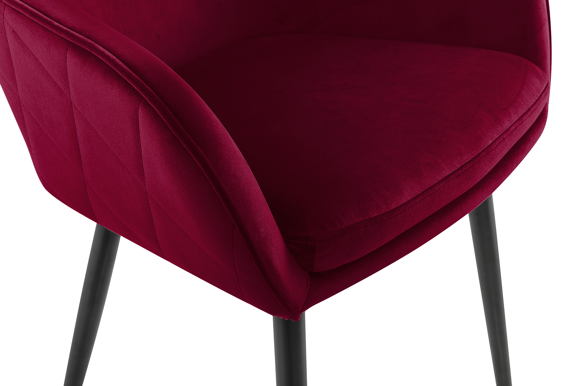 Der moderne Polsterstuhl besticht durch seinen Stoffbezug in Samt-Optik und überzeugt mit seiner Polsterung an Sitz- und Rückenfläche. Das leicht ausgestellte 4 Fuß Gestell aus schwarzem Metall ist höhenverstellbar und gewährleistet nicht nur einen sicheren Stand, sondern bietet auch einen großartigen Kontrast zum Bezug des Stuhles. Durch die bequeme Polsterung, die Rückenlehne und die Armlehnen entsteht ein angenehmer Sitzkomfort der Extraklasse. Das optische Highlight ist die Diamantensteppung, welche sich über den äußeren Sitz- und Rückenbereich erstreckt.