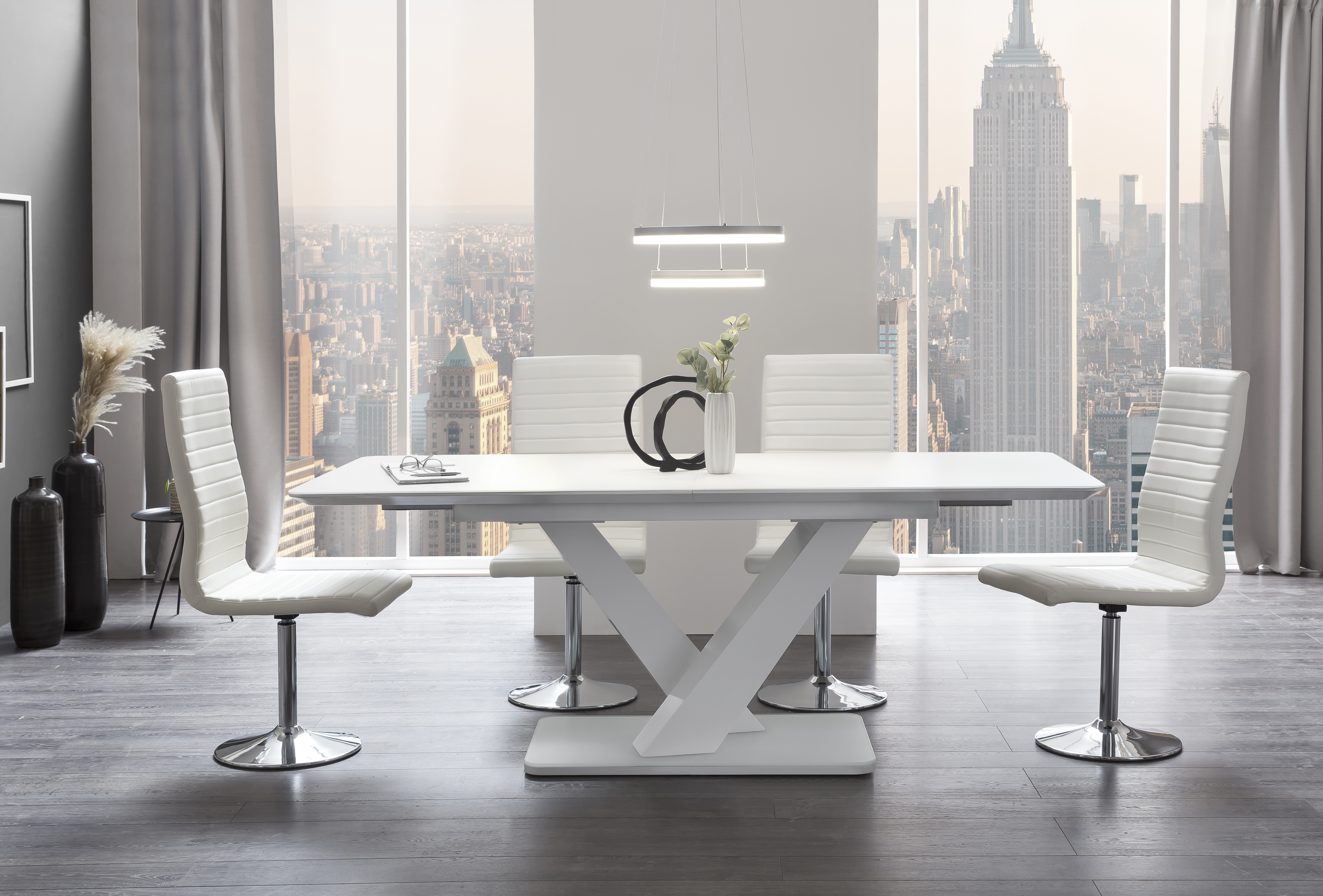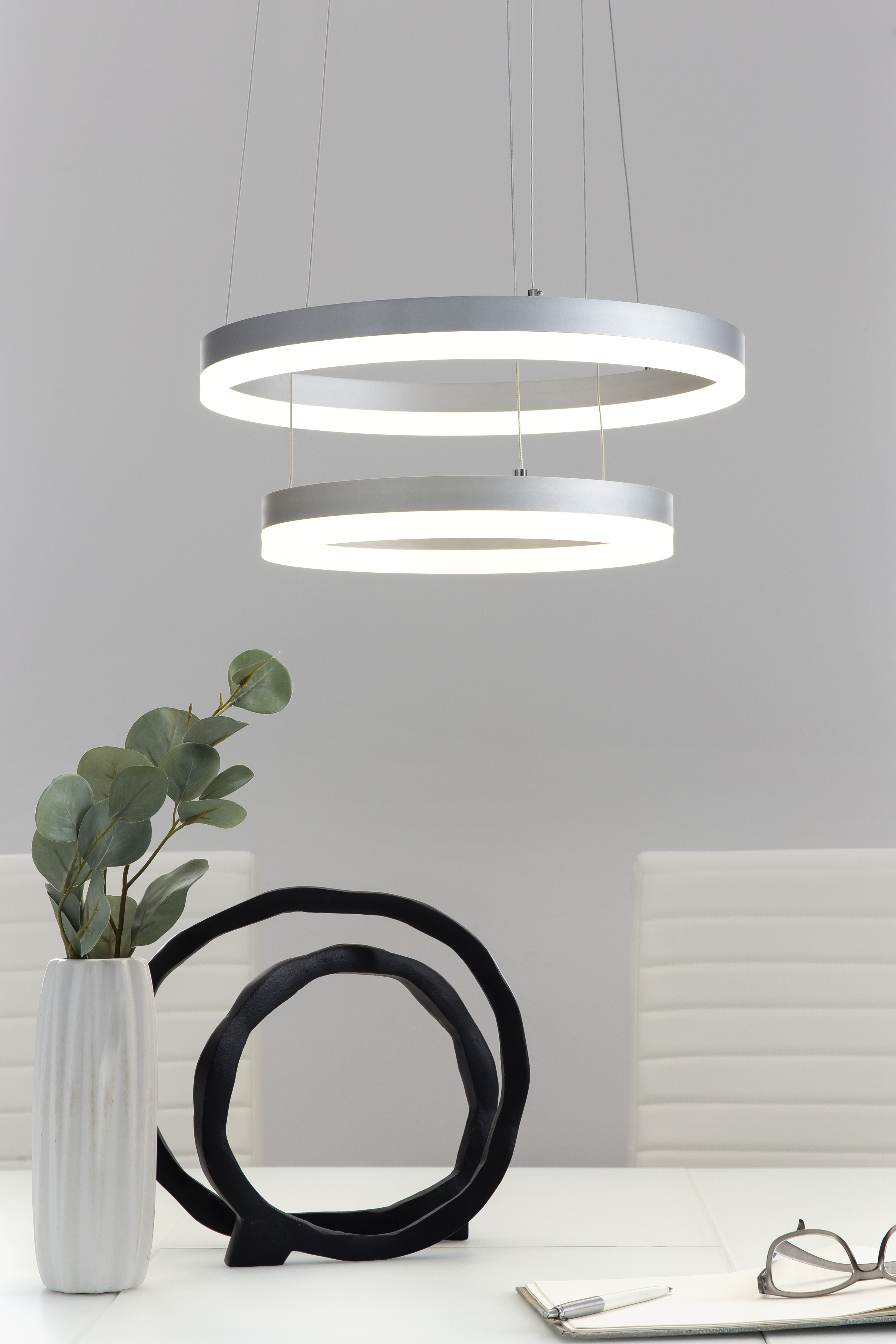 Die extravagante Hängelampe überzeugt mit ihrem modernen Design. Das gelungene Erscheinungsbild und die hochwertigen Materialien machen diese Pendelleuchte für modernes Wohnen so beliebt. Im eingeschalteten Zustand ist eine schöne Ausleuchtung garantiert, aber auch im ausgeschalteten Zustand ist diese Deckenleuchte ein besonderes Highlight. Die runden LED-Ringe aus Acryl passen perfekt zu der Aufhängung aus Metall. Besonders über einem Esstisch macht diese Deckenlampe eine gute Figur, aber achten Sie darauf, dass diese nicht zu tief hängt. Die exklusive und stylische Wirkung der Hängelampe ist ein eindrucksvoller Blickfang in Ihrem Wohnraum und verkörpert den modernen Stil. Die Hängelampe ist sehr pflegeleicht und strapazierfähig und kann mit einem nebelfeuchten Baumwolltuch leicht abgewischt werden.