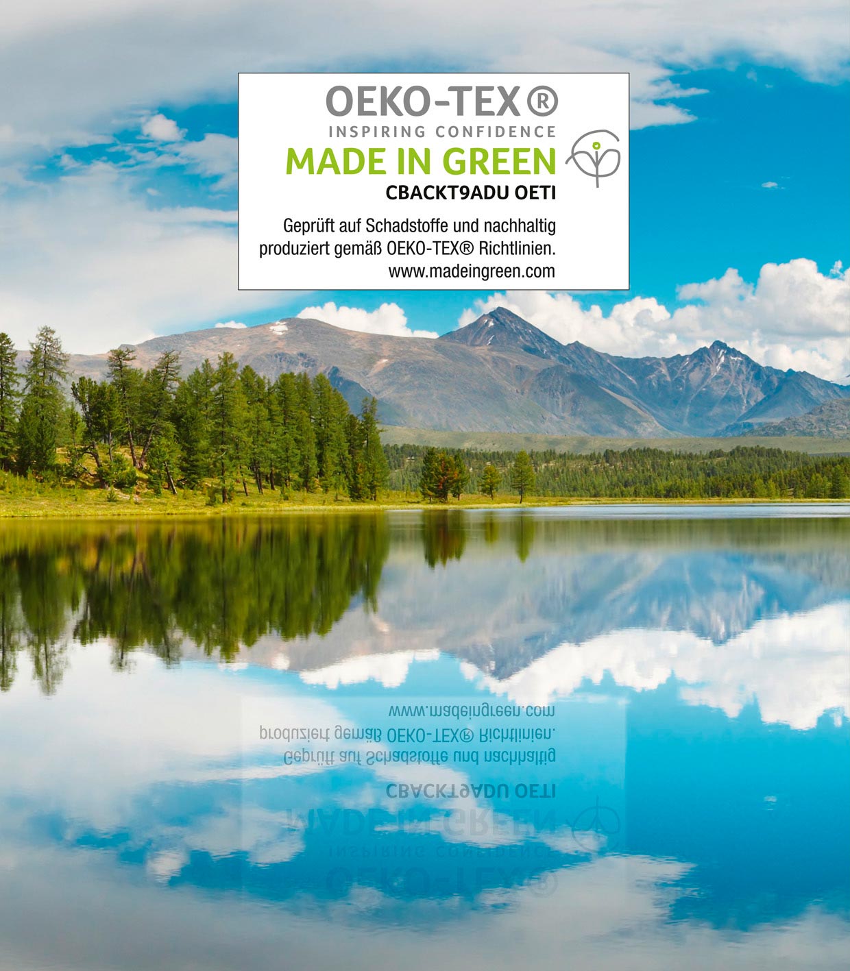Mit dem Bettwarenprogramm Tegernsee entscheiden Sie sich für Vertrauen, Rückverfolgbarkeit und Nachhaltigkeit. Das nachverfolgbare Produktlabel Made in Green von Öko-Tex garantiert schadstoffgeprüfte Materialien und ressourcenschonende Fertigungsprozesse an sicheren und sozialverträglichen Arbeitsplätzen. Die transparente Rückverfolgung erfolgt mittels eines QR-Codes bzw. einer eindeutigen Produkt-ID.