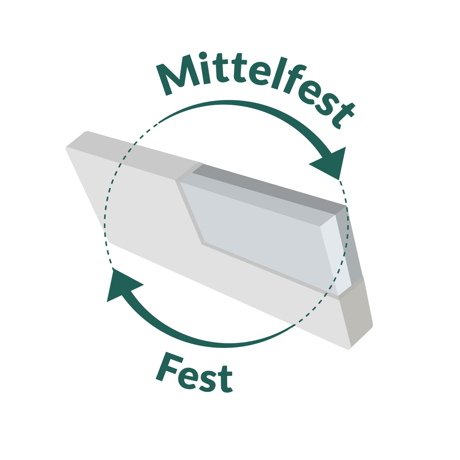 Du entscheidest: mittelfest (H2) oder fest (H3) – einfach wenden und Deine bevorzugte Liegeseite genießen. So findest Du immer die perfekte Unterstützung für Deinen Körper.