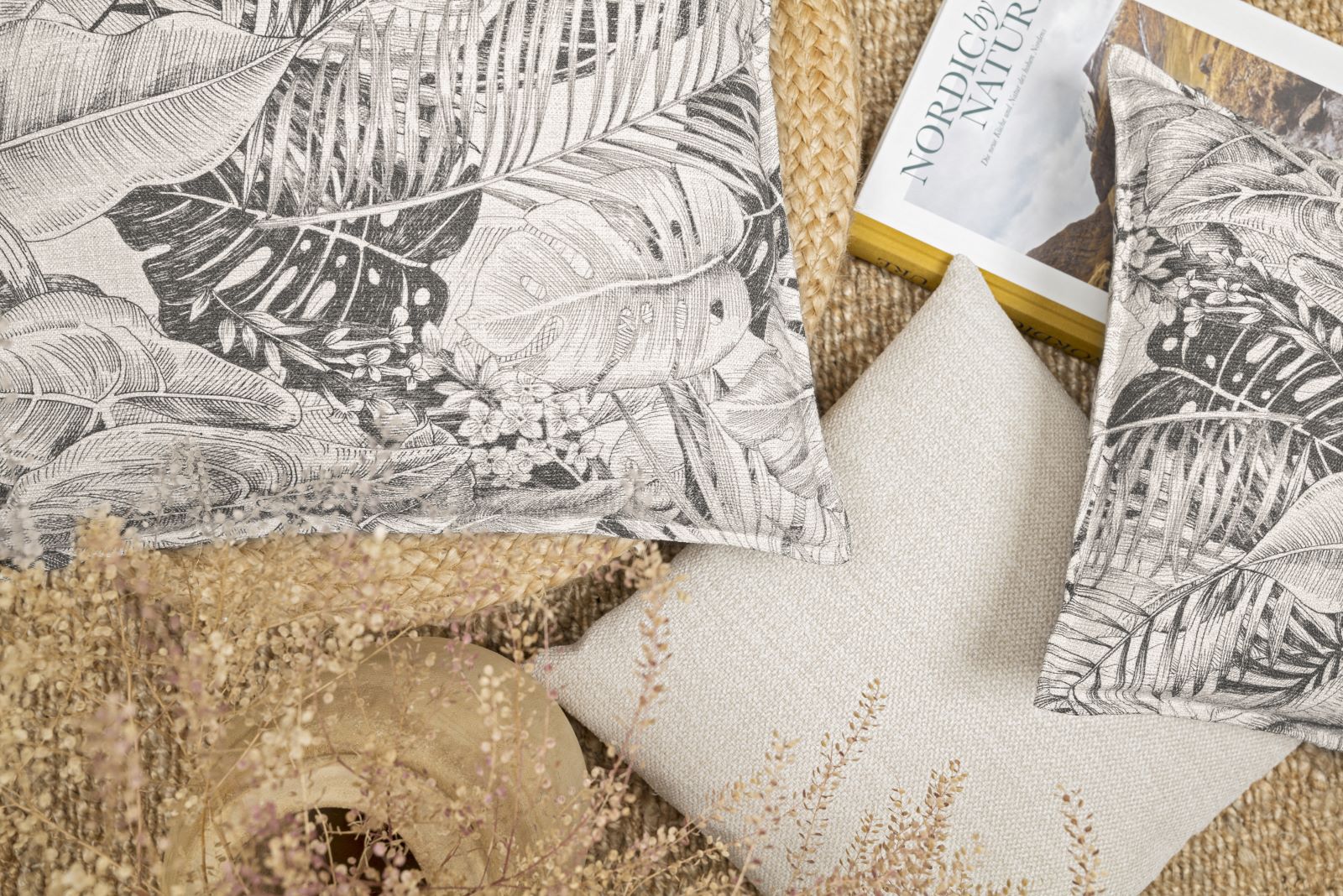 - Kissenhülle mit floralem Print in Schwarz- und Grautönen