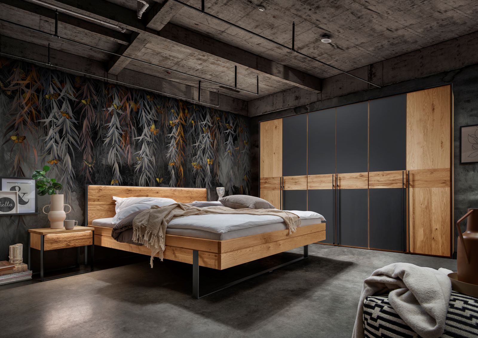 • Hochwertiges Massivholz-Bett aus Wildeiche