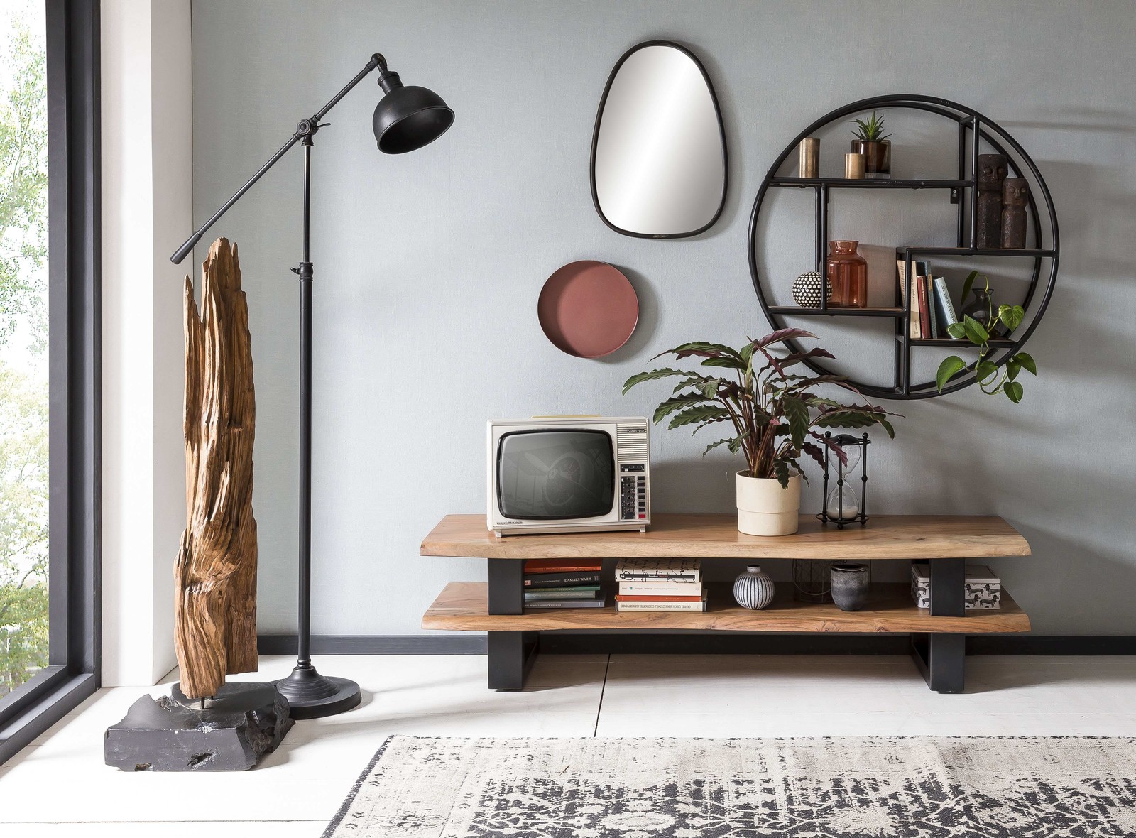 Dieses moderne Wandregal aus naturfarbenem Mangoholz mit einem antikschwarzen Altmetall-Rahmen können Sie ganz individuell gestaltet aufhängen. Somit können Sie Ihrer Kreativität freien Lauf lassen und Ihre Wände verschönern. Der Factory Style ist dabei ein absoluter Eyecatcher. Das Massivholzregal ist vielseitig einsetzbar und kann in den unterschiedlichsten Räumlichkeiten verwendet werden. Egal ob im Wohnzimmer, Esszimmer oder Diele – dieses Wandregal kommt überall optimal zur Geltung.