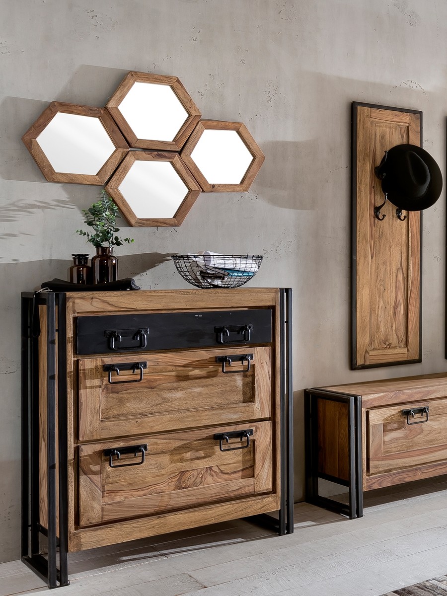 - Schuhschrank aus gebeiztem Akazie-Holz aus der Serie PANAMA