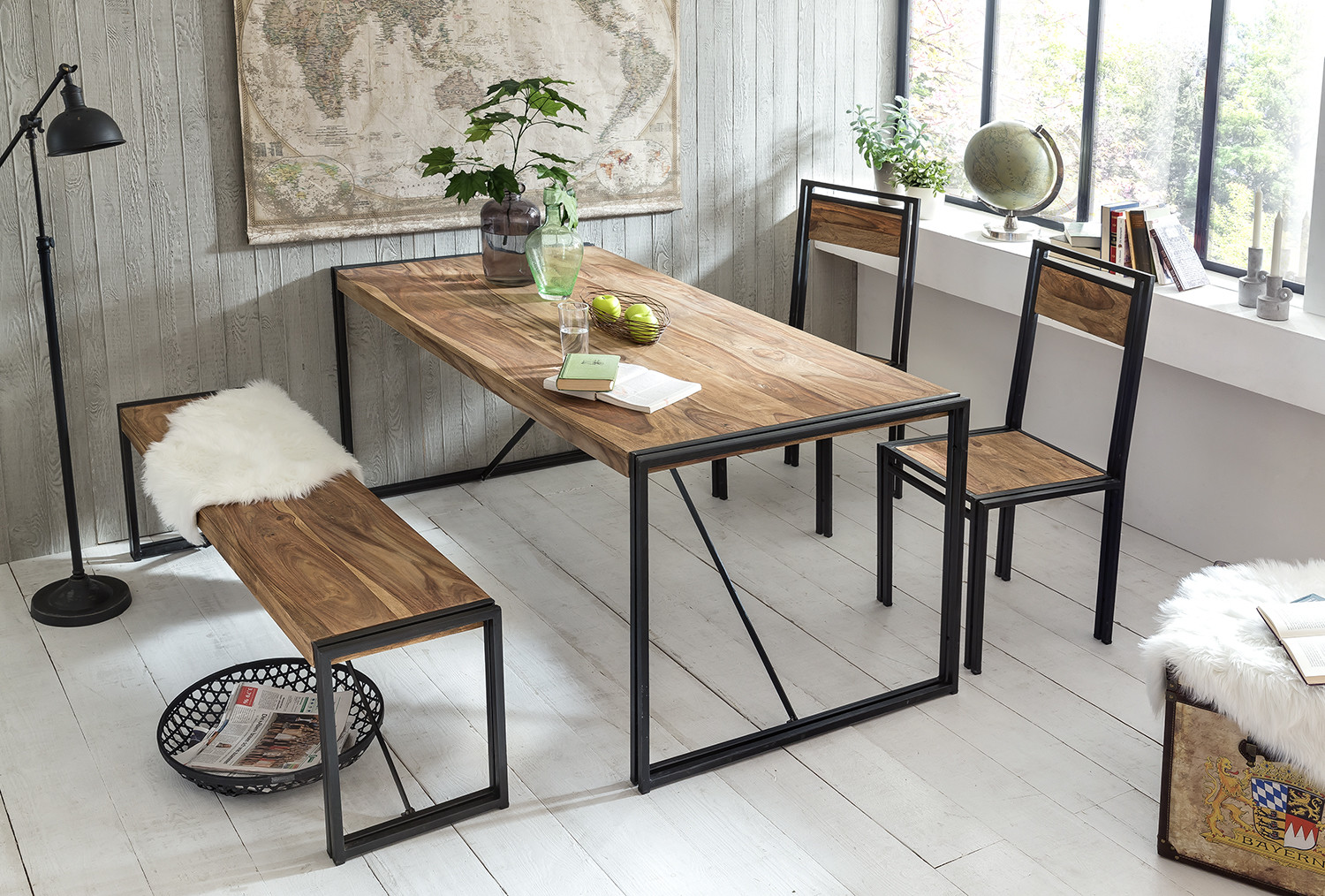 Dieser Esszimmertisch, handgefertigt aus Akazie, ist ein Blickfang, denn das beliebte Factory-Design wurde hier besonders gut umgesetzt. Der Tisch bietet genügend Platz für bis zu 6 Stühle beim gemeinsamen Frühstück, Mittag- und Abendessen. Der Küchentisch ist dank seiner Kombinationsmöglichkeit mit schon vorhandenem Mobiliar vielseitig einsetzbar und lässt jedes Essen zu einem Festessen werden. Der Tisch ist er gerade für den angesagten Landhausstil wie gemacht, aber auch im Shabby Chic und Vintage Design lässt er sich problemlos integrieren. Die auf alt getrimmte Oberfläche sowie das Tischgestell aus Altmetall lassen diesen Tisch zu einem Eyecatcher werden. Die Mittelverstrebung ist nicht nur optisch ein weiteres schönes Detail, sie gibt die nötige Stabilität und lässt dennoch die nötige Beinfreiheit.