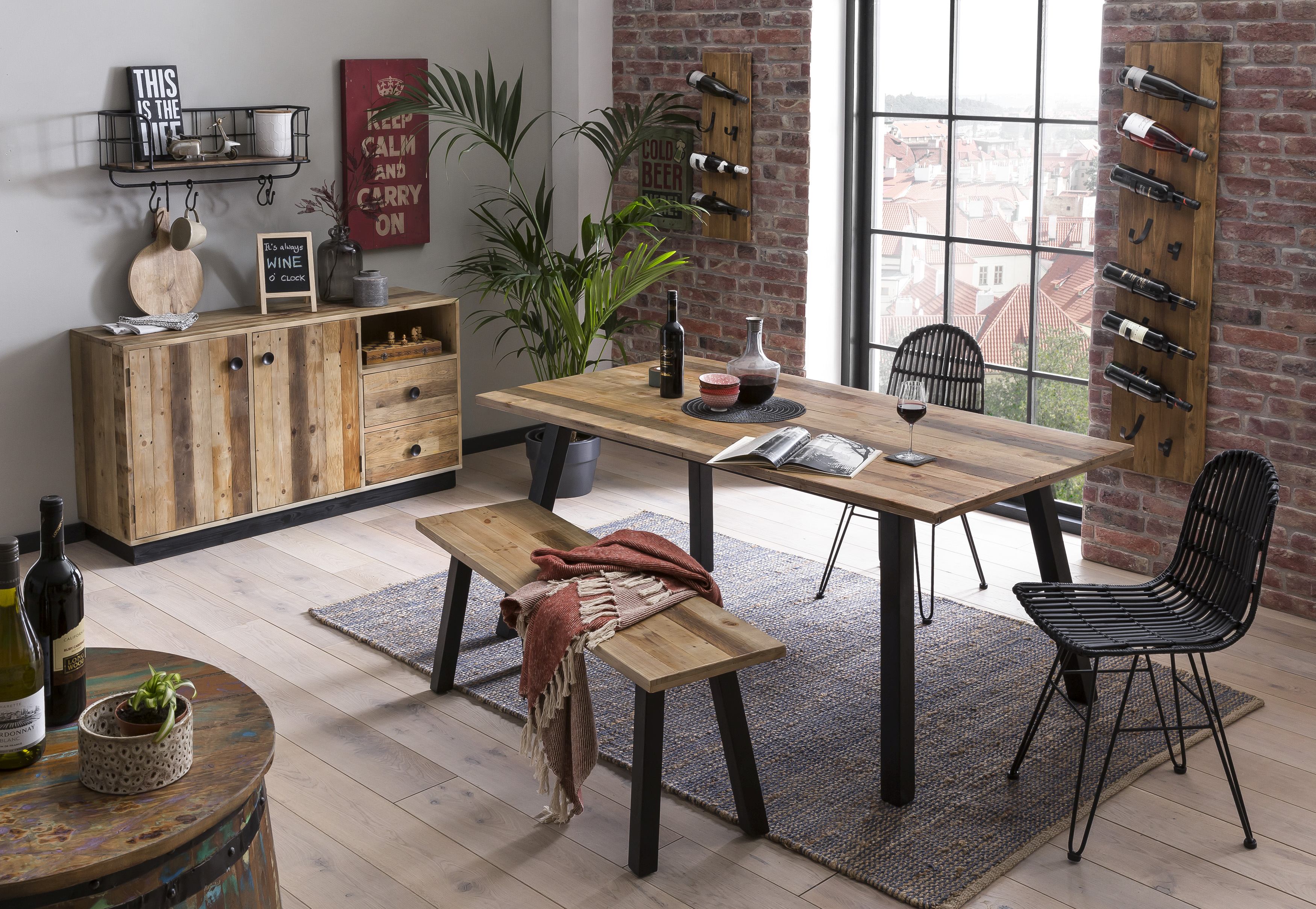 - Material: Mangoholz mit Altmetall