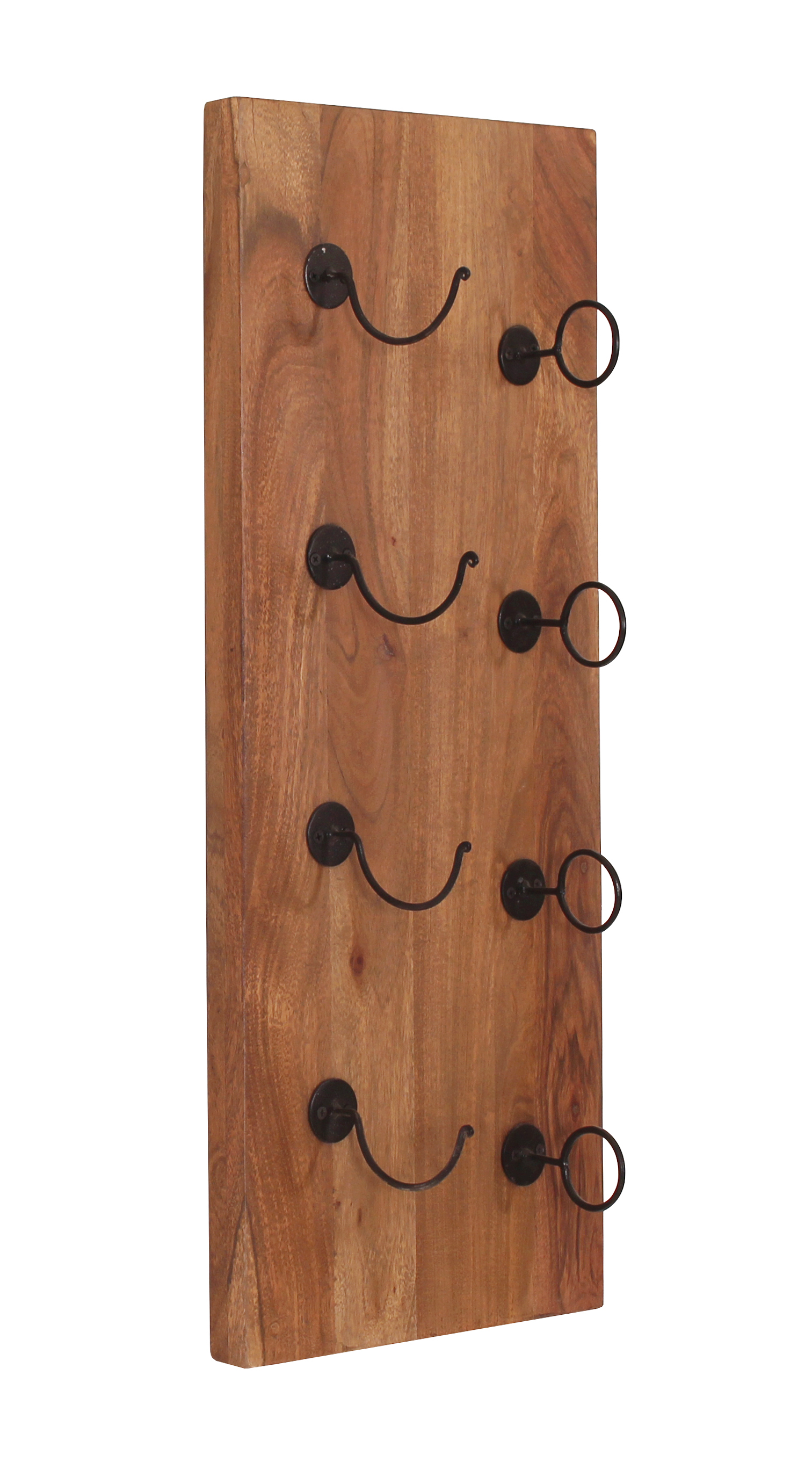 Mit diesem praktischen Weinregal können Sie 4 Weinflaschen gleichzeitig platzsparend und dekorativ an der Wand unterbringen. Die Kombination von mehreren Wandregalen erhöht die Kapazität und setzt der kreativen und individuellen Anordnung keine Grenzen. Das warme Akazienholz und die antikschwarzen Metallhaken in Kombination mit edlen Weinflaschen zaubern ein stilvolles und gemütliches Flair.