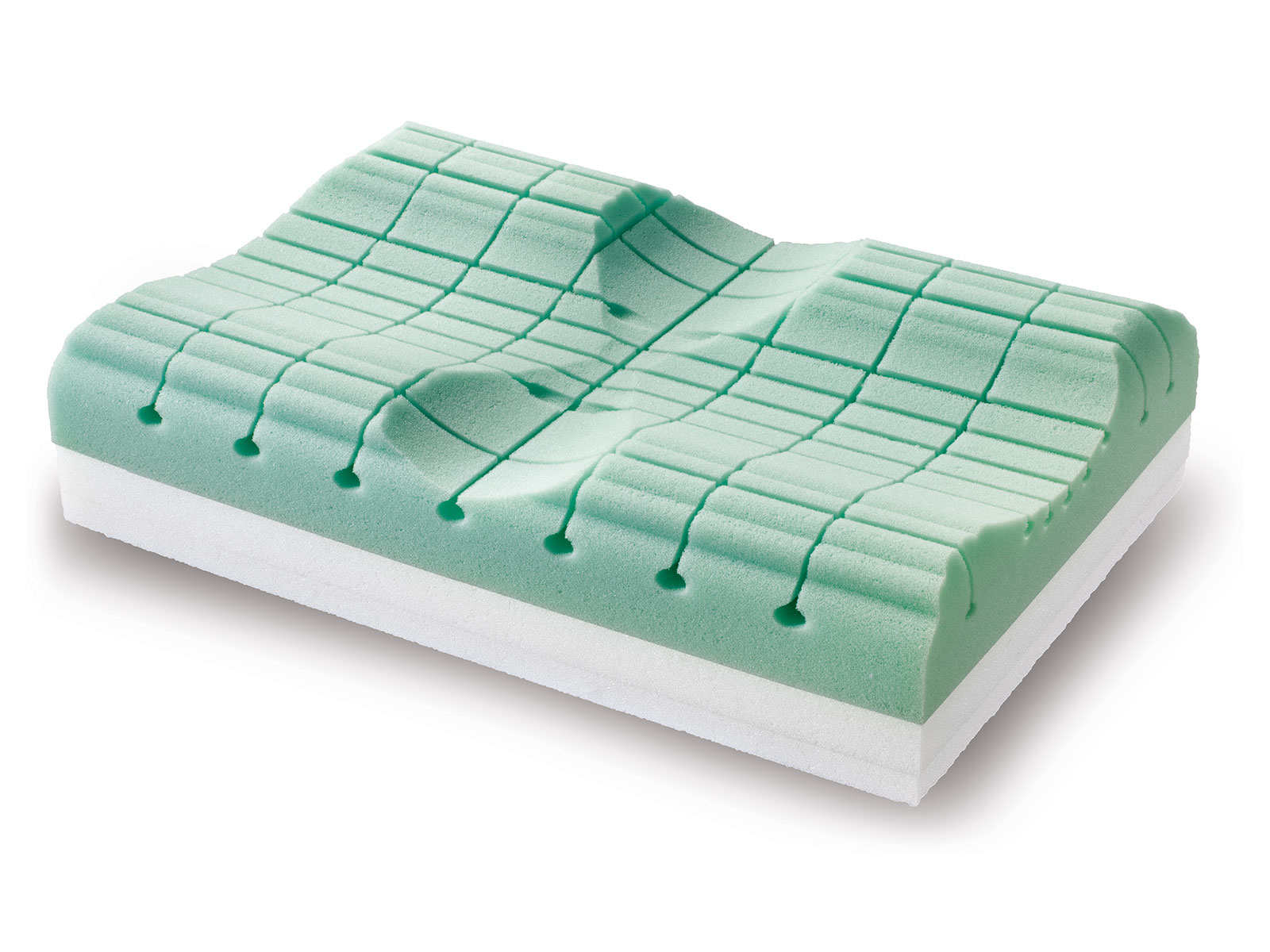 In Seitenlage liegt die Wirbelsäule entspannt in gerader Lage, der Kopf wird sanft gestützt - Mit besonderer Schnitttechnik für Druckentlastung der Halswirbel und Muskeln