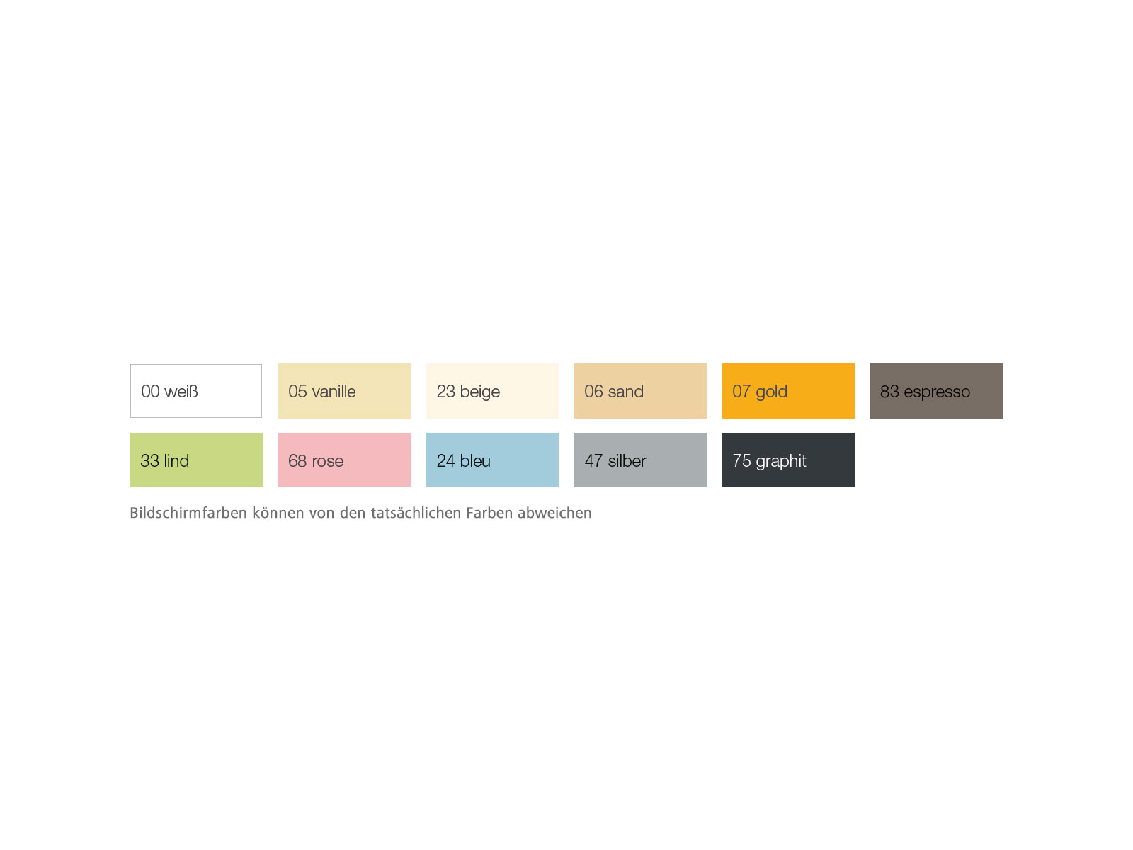 | Farbe: | Beige, Blau, Braun, Gelb, Grau, Grün, Rosa, Weiß |
