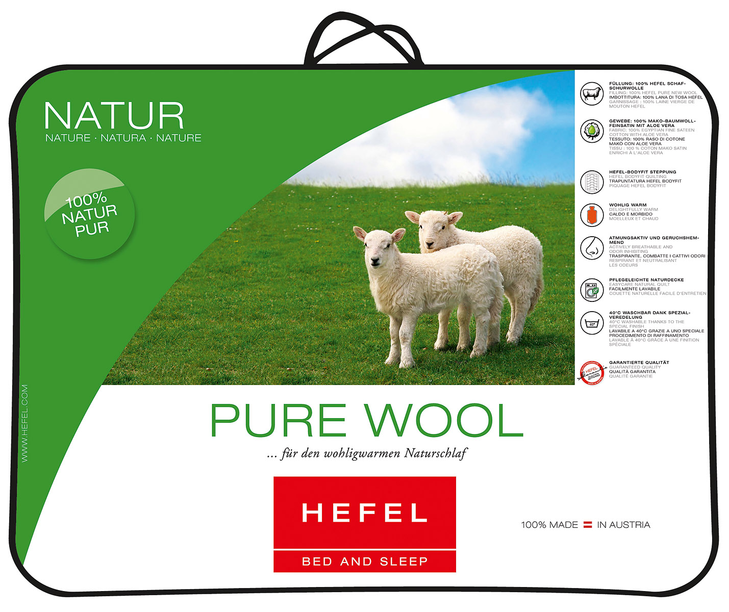 - Die Ganzjahresdecke Pure Wool von Hefel garantiert das ganze Jahr über ein wohl temperiertes, angenehm trockenes Schlafklima für wohltuenden Schlaf