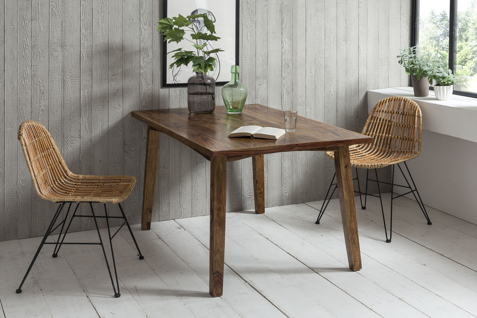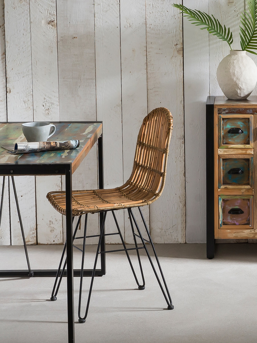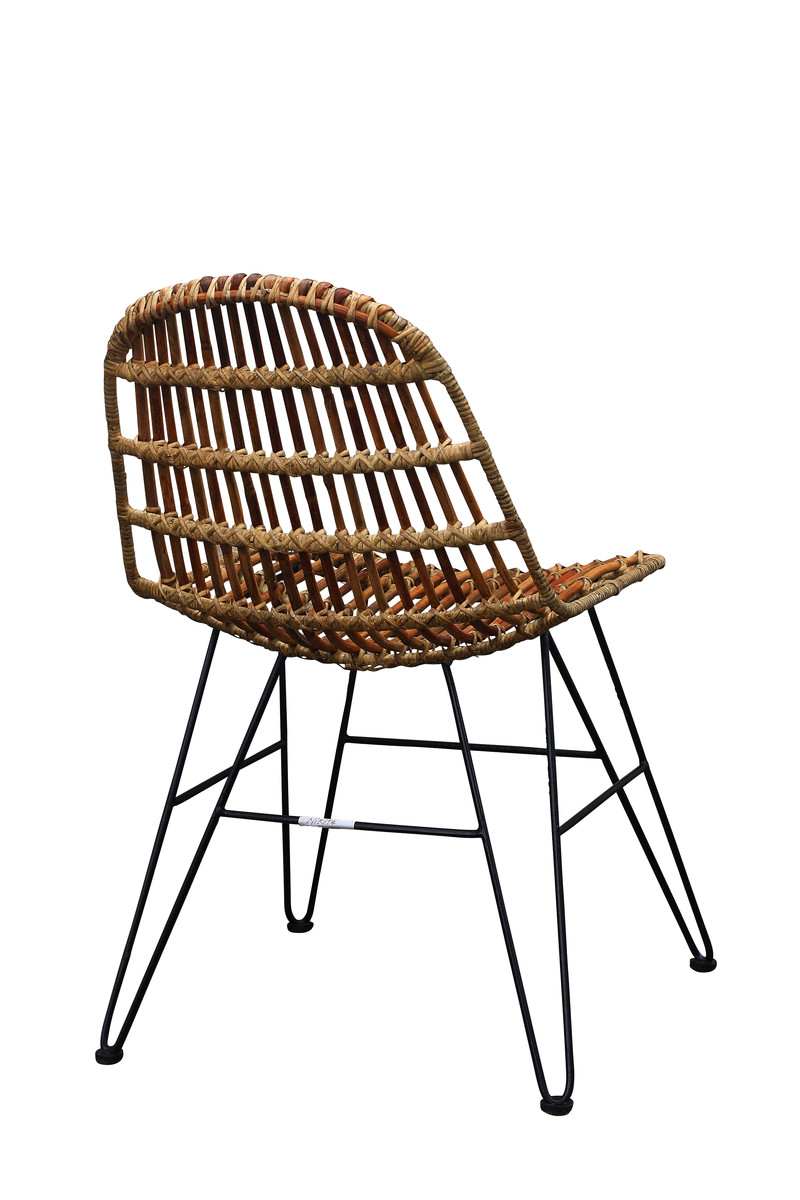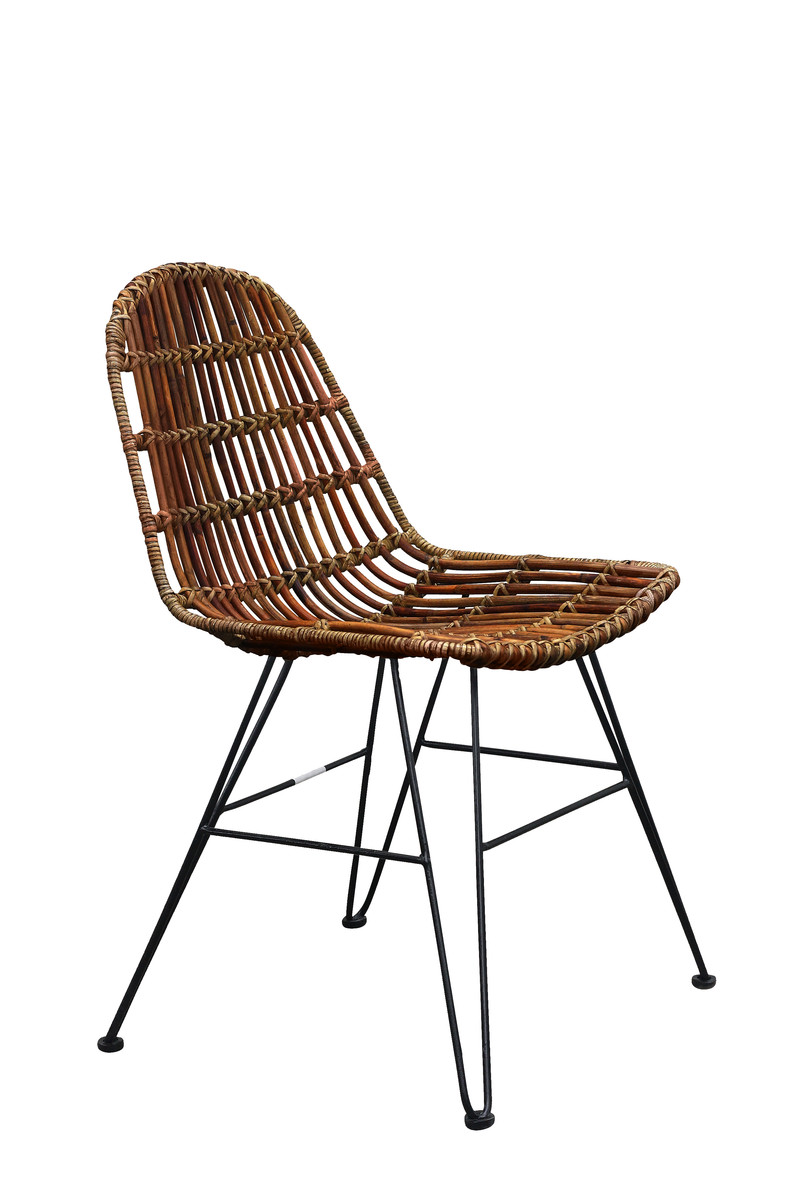 Mit schnell nachwachsenden Rohstoffen kann man nichts falsch machen. Dieser Rattan-Stuhl aus ungeschältem, naturbelassenem Rattan mit einem stabilen, schwarzen Metallgestell wird handgefertigt und passt sich dank seines warmen und exotischen Charmes jeden Wohnbereich an. Kombiniert zu factory Design oder Vintage, antik und rustikal, diese Sitzgelegenheit passt immer. Dekoriert mit einem hübschen Kissen als Einzelstuhl im Gästezimmer oder Schlafzimmer. Im Esszimmer und Wohnbereich bietet er einen bequemen Sitzplatz für Ihre Gäste. In großen Dielen oder Fluren, auf der Terrasse oder im Wintergarten bietet dieser Stuhl mit seiner wunderschönen naturbelassenen Optik einen Platz zum Ausruhen. Das Rattan-Geflecht des Stuhls ist dicht strukturiert, formschön dargestellt und stabil.