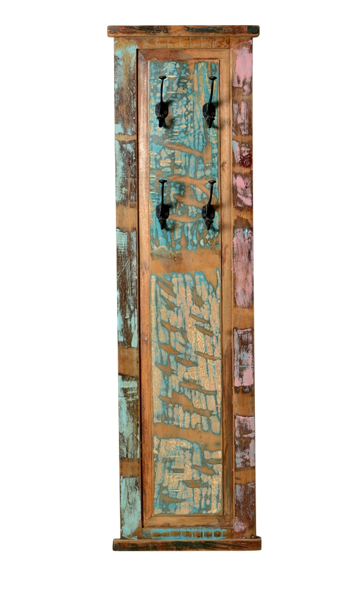 Holen Sie sich mit diesem Dielen-Set aus bunt lackiertem Altholz Urlaubsfeeling in Ihr Haus. Ein niedriger Schuhschrank bietet Platz für ca. 6 Paar Schuhe und ist auch kurzfristig als Bank einsetzbar, um das Schuhe anziehen zu erleichtern. Die 2 Garderobenpaneele mit je 4 Doppel-Haken bieten zusätzlichen Platz für Jacken, Mäntel oder Taschen. Mit diesem Dielen-Set bringen Sie ein rustikales und gleichzeitig außergewöhnliches Design in den Flur und setzen ein stylisches Statement schon im Eingangsbereich. Hergestellt aus FSC-zertifiziertem Holz.
