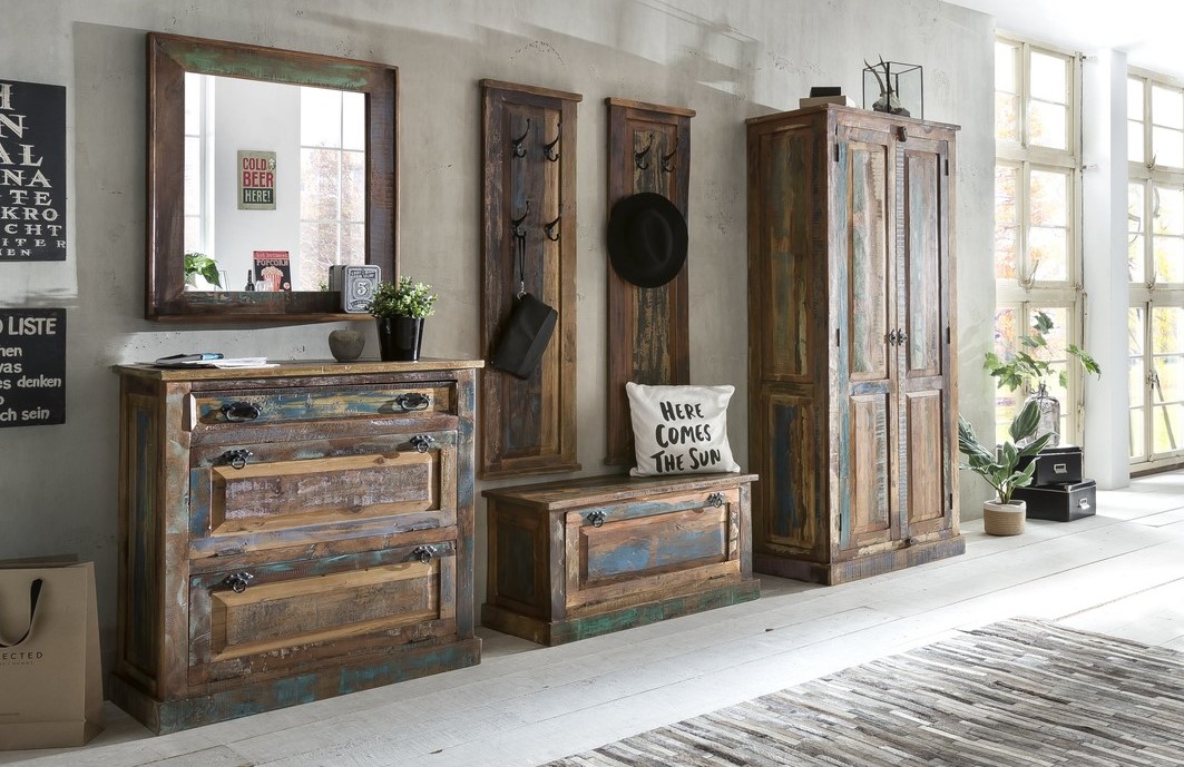 - Schuhschrank aus bunt lackiertem Altholz aus der Serie RIVERBOAT