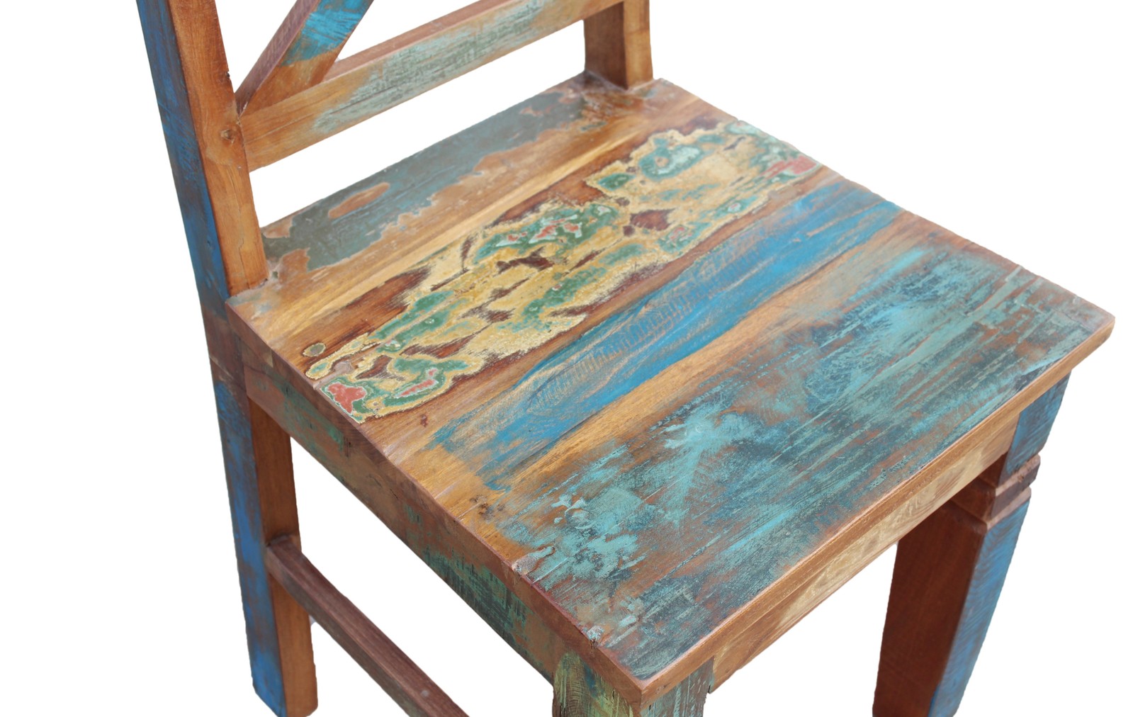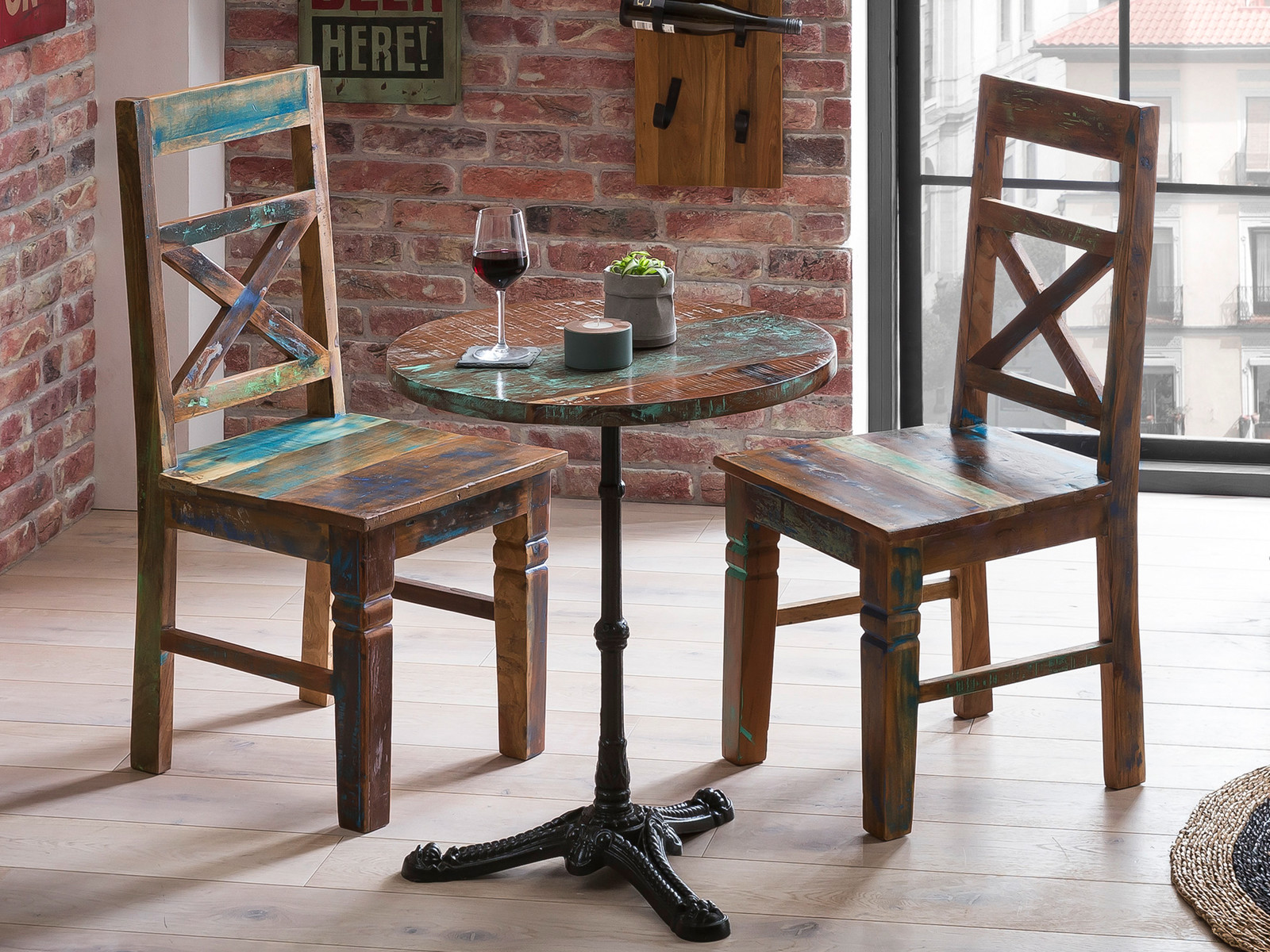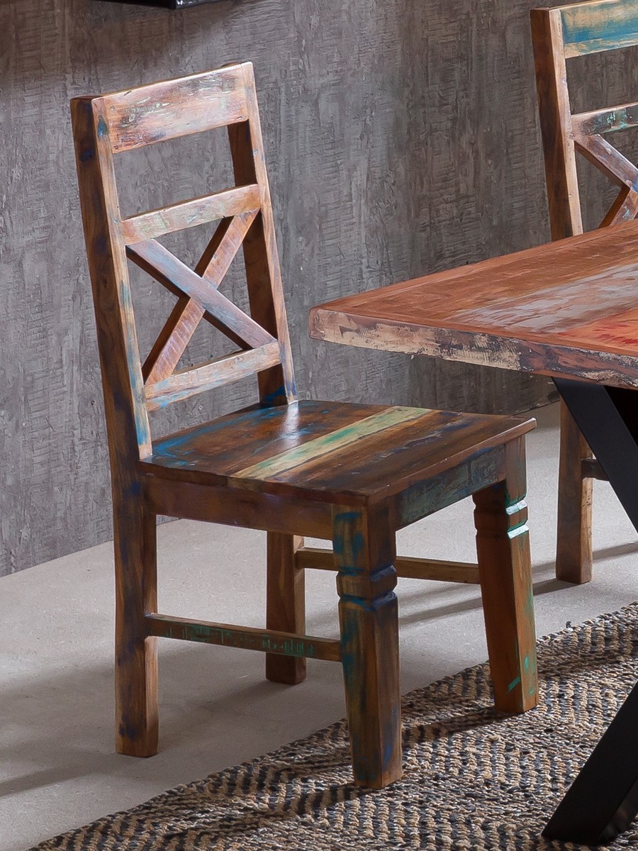 - Stuhl, 2er-Set aus buntem Altholz aus der Serie RIVERBOAT