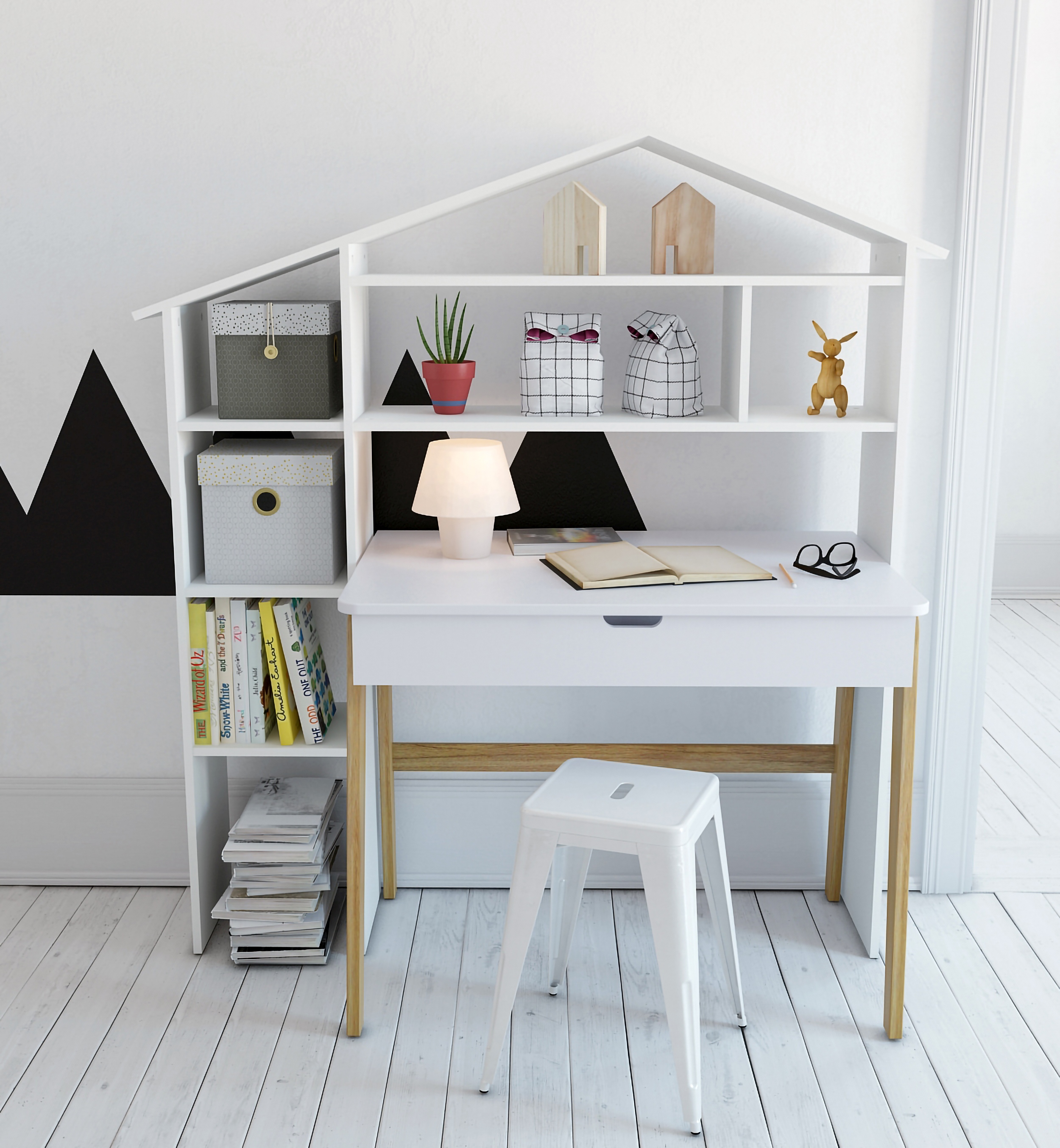 Das Regal in Hausform ist für jedes Kinderzimmer die richtige Wahl. Sieben offene Regalböden bieten jede Menge Platz für Bücher, Spielzeug und Dekoelemente. Dieses Regal kann auch hinter einem Bett oder einem Schreibtisch platziert werden. Das nordisch-moderne Design des Regales passt in viele Kinderzimmereinrichtungen und wird dort zum absoluten Hingucker. Entweder optimal abgestimmt mit anderen Möbeln der Kollektion oder als Element in einem Mix & Match Kinderzimmer integriert sich diese Standregal harmonisch in viele Einrichtungen. Setzen Sie beispielsweise die Lieblingsbücher und Stofftiere Ihres Sprösslings so gekonnt in Szene.