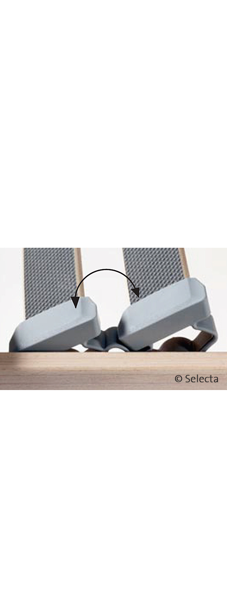 - Lordosebereich in der Mittelzone verstärkt durch Doppelleisten, die durch einfache Handhabung individuell in der Festigkeit reguliert werden können