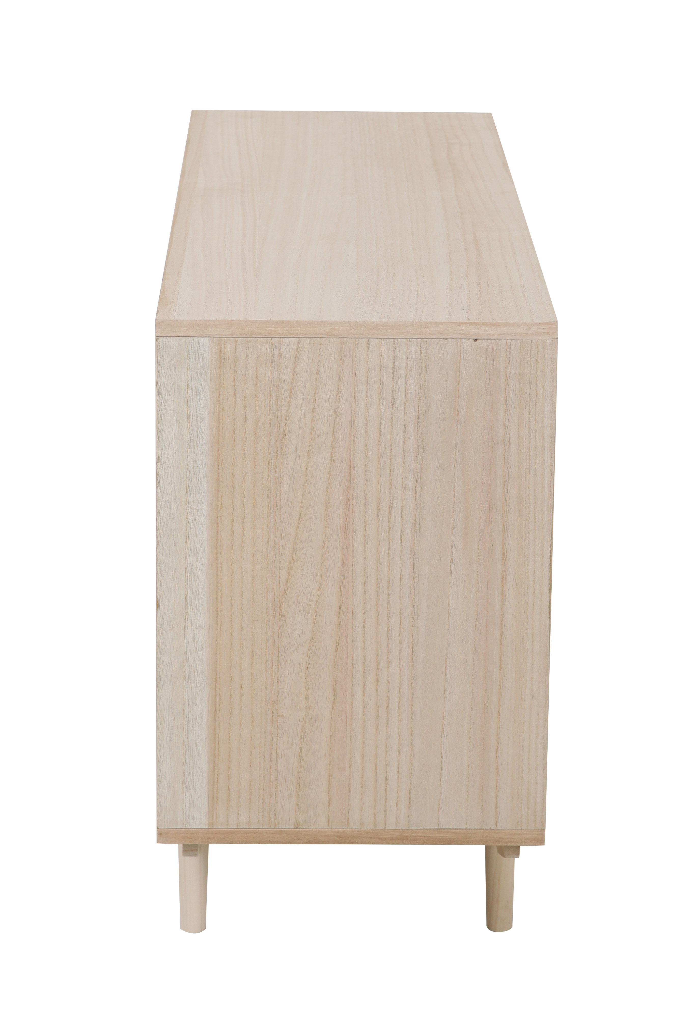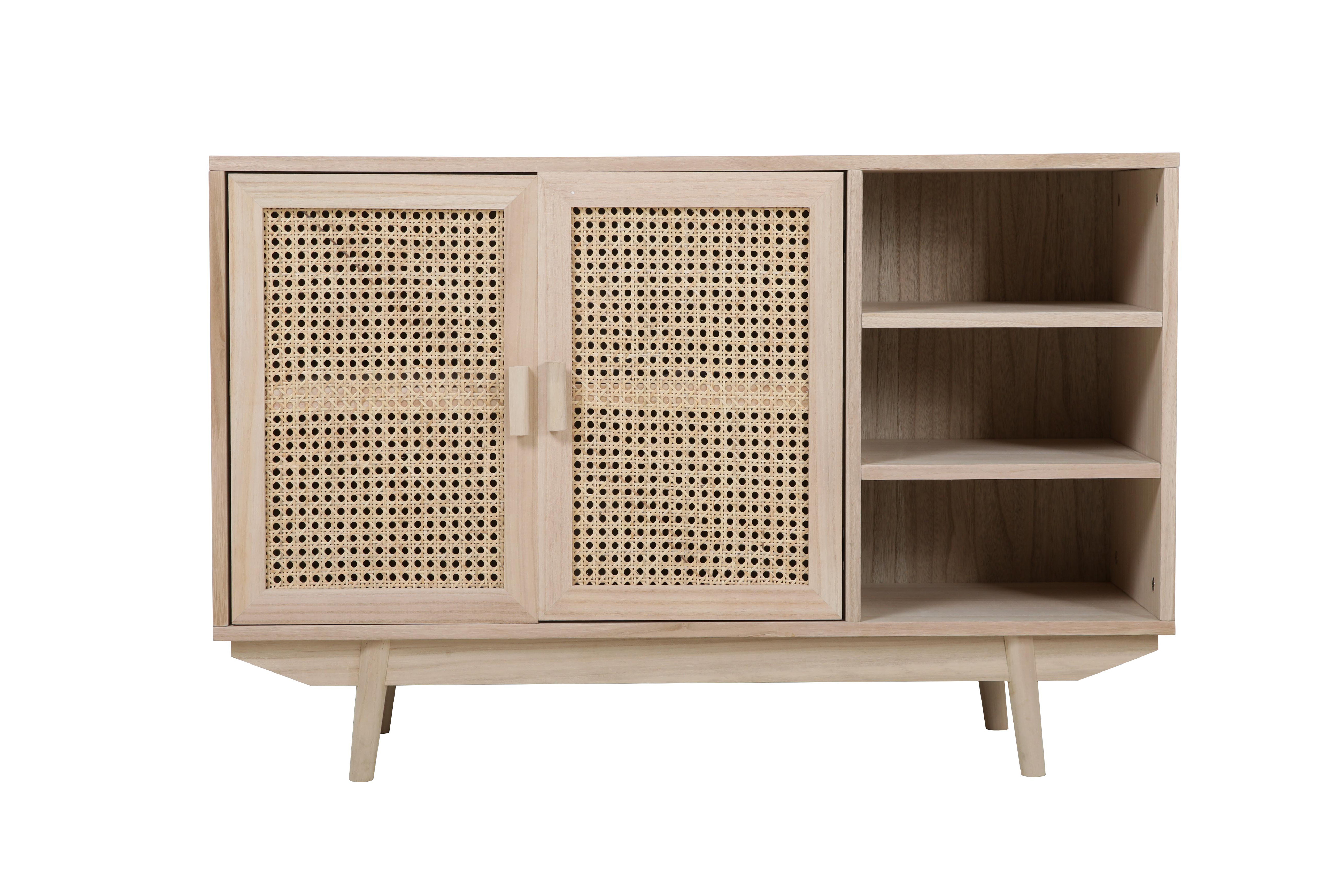 - Beine aus Paulownia Holz, Korpus MDF mit Paulownia-Holzfurnier und Rattanfront
