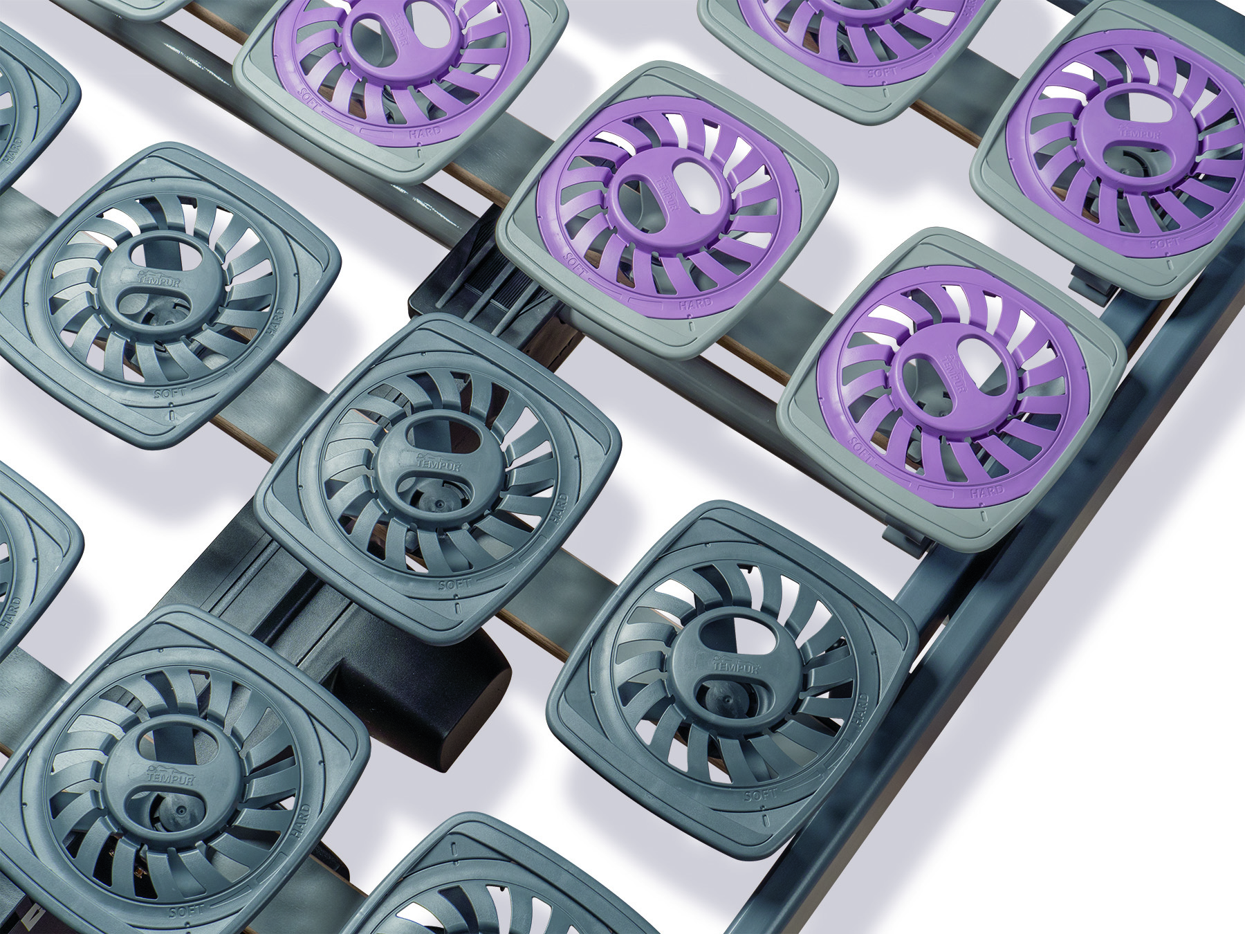 - Flexible Tellerelemente: jeder einzelne Teller ist individuell Einstellbar in soft, mittel und fest
