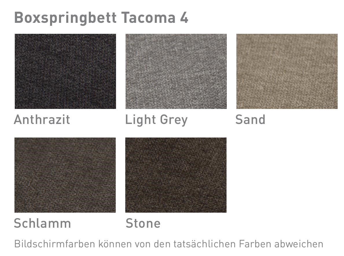 • Modernes Boxspringbett mit Stoffbezug Soro und Multipocket Obermatratze Härtegrad 2 (Liegeempfinden mittel-hart) mit natürlicher Körperanpassung und guter Unterstützung der Körperbereiche