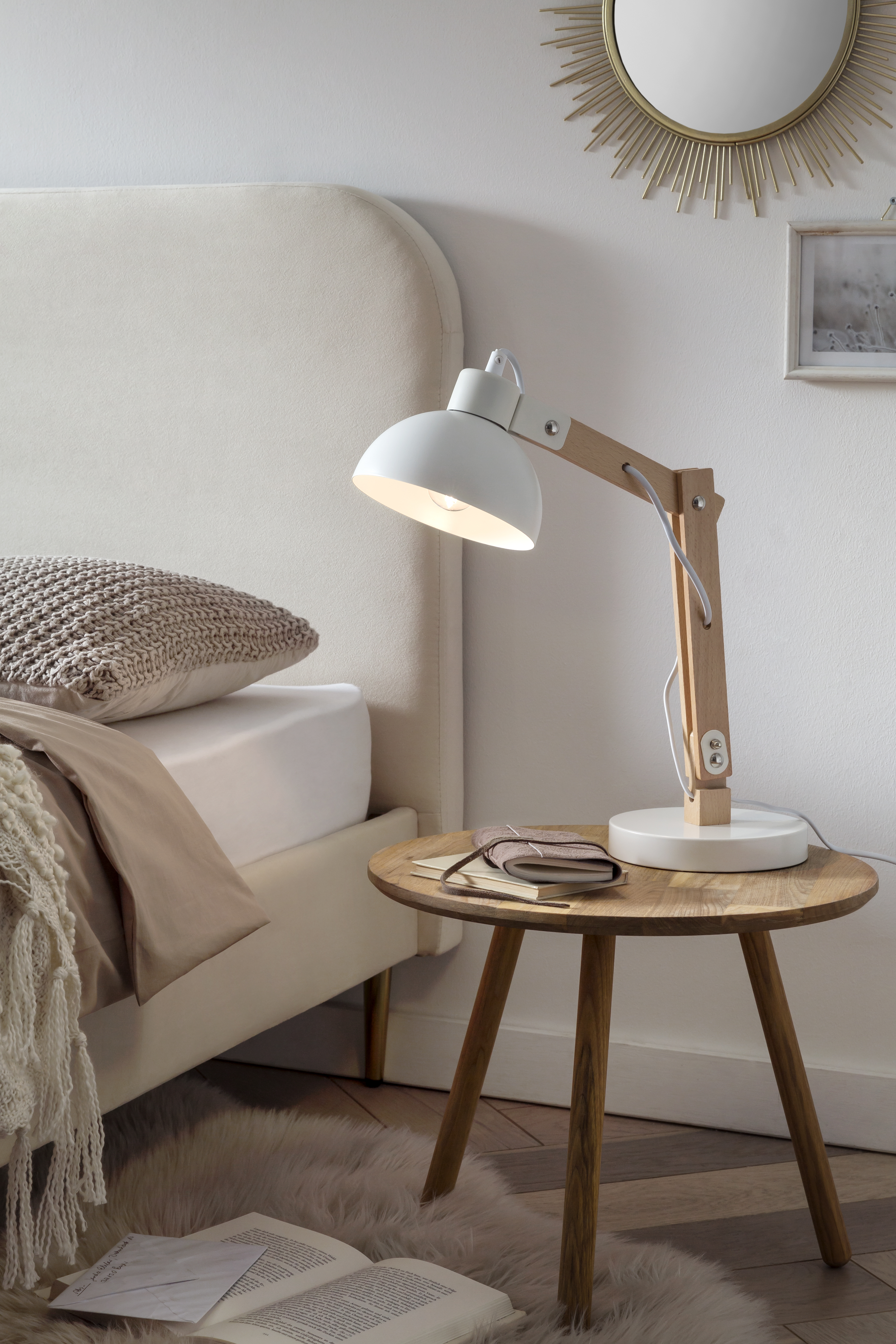 Diese Tischlampe überzeugt mit ihrem modernen Design. Der Lampenschirm und das Gestell aus Holz und Metall sehen nicht nur stylisch aus, sie sind auch sehr pflegeleicht. Diese Tischlampe macht immer eine gute Figur. Der bewegliche Gelenkarm ist praktisch, da er sich Ihren individuellen Bedürfnissen anpassen lässt.
