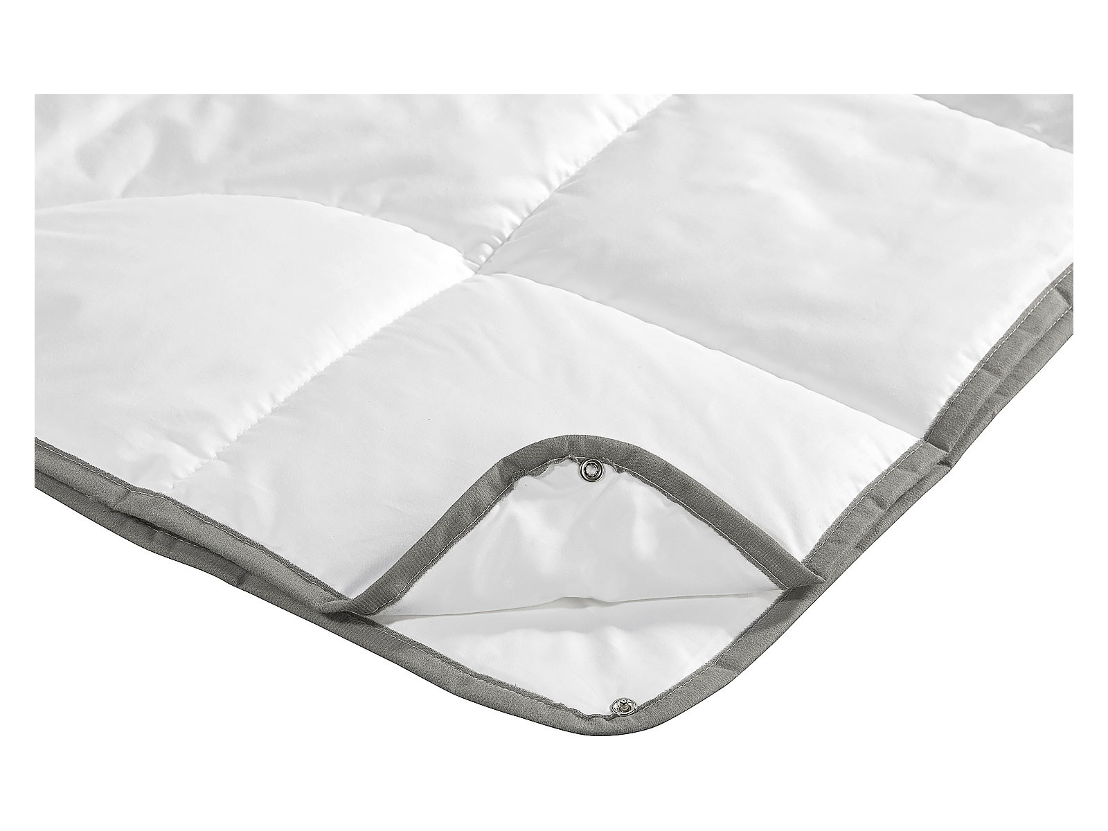 Zwei Decken mit unterschiedlichen Gewichten sind durch Druckknöpfe verbunden und lassen sich je nach Bedarf getrennt oder zusammen verwenden, einzeln als leichte Sommerdecke oder Übergangsbett, zusammen als warme Winterdecke - Füllung aus Lyocell(Tencel)/ Klimafaser auf Cellulose-Basis