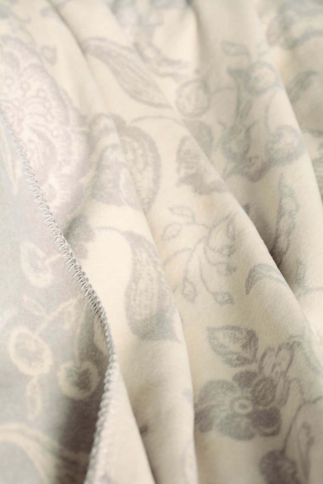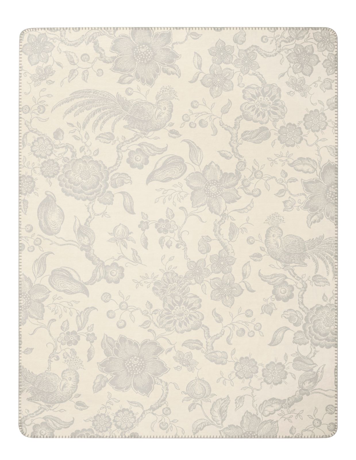 - Elegante Wohndecke mit geschwungenen Ranken, ausdrucksstarken Blüten und exotischen Vögeln in dezenter Farbkombination